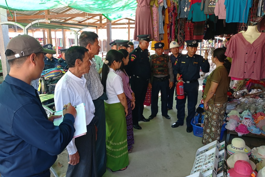 ဦးစွာ မြို့နယ်စည်ပင်သာယာရေးအဖွဲ့ရုံးမှ ဒေါ်သင်းသင်းအေး(ဌာနခွဲစာရေး)က မြို့မဈေးကြီးတည်ရှိပုံ၊ မီးသတ်ရေကန်များ၊ ရေငုတ်များနှင့် မီးသတ်ရေပိုက်များ သွယ်တန်းထားရှိမှုနှင့် အရေးပေါ်အသုံးပြုနိုင်ရေး ထားရှိမှုအခြေအနေများကို ရှင်းလင်းပြောကြားပြီး ခရိုင်မီးသတ်ဦးစီးမှူး ဦးသန်းထက်အောင်က မြို့မဈေးဧရိယာအတွင်း မီးဘေးအန္တရာယ်ကြုံတွေ့ပါက မီးငြှိမ်းသတ်ယာဉ်များ အလွယ်တကူ ဝင်ထွက်သွားလာနိုင်ရန်၊ ဈေးအတွင်းမီးသတ်ရေကန်များမှ ရေဖြင့် မီးငြှိမ်းသတ်နိုင်ရေး ဆောင်ရွက်ထားရှိရန်တို့ကို ဖြည့်စွက်ပြောကြားခဲ့သည်။