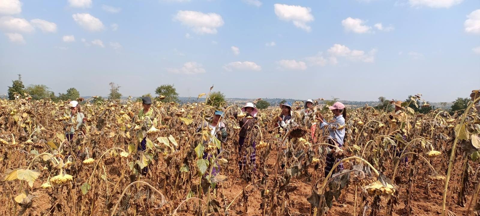 မကွေးတိုင်းဒေသကြီး၊ နတ်မောက်မြို့နယ်၊ ချောင်းနက်အုပ်စု၊ ဝံကိုက်ကျေးရွာတောင်သူ ဦးဘို၀င်း၏ ဆောင်းနေကြာစိုက်ခင်းတွင် ယမန်နေ့နံနက်ပိုင်းက မျိုးမြှင့်တင်ခြင်းလုပ်ငန်းများ ဆောင်ရွက်လျက်ရှိကြောင်း သိရသည်။