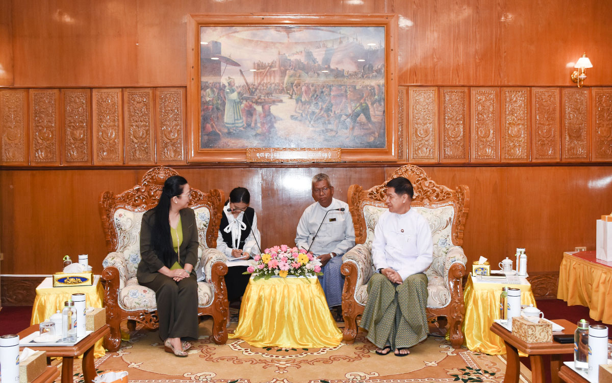 မန္တလေးတိုင်းဒေသကြီးအစိုးရအဖွဲ့ဝန်ကြီးချုပ် ဦးမျိုးအောင်သည် မြန်မာနိုင်ငံဆိုင်ရာ တရုတ်ပြည်သူ့သမ္မတနိုင်ငံ သံအမတ်ကြီး H.E. Ms. Ma Jia နှင့် အဖွဲ့အား ယမန်နေ့ နံနက်ပိုင်းက မန္တလေးမြို့တော်စည်ပင်သာယာရေးကော်မတီရုံး ယုဇနဧည့်ခန်းမတွင် လက်ခံတွေ့ဆုံခဲ့ကြကြောင်း သိရသည်။
