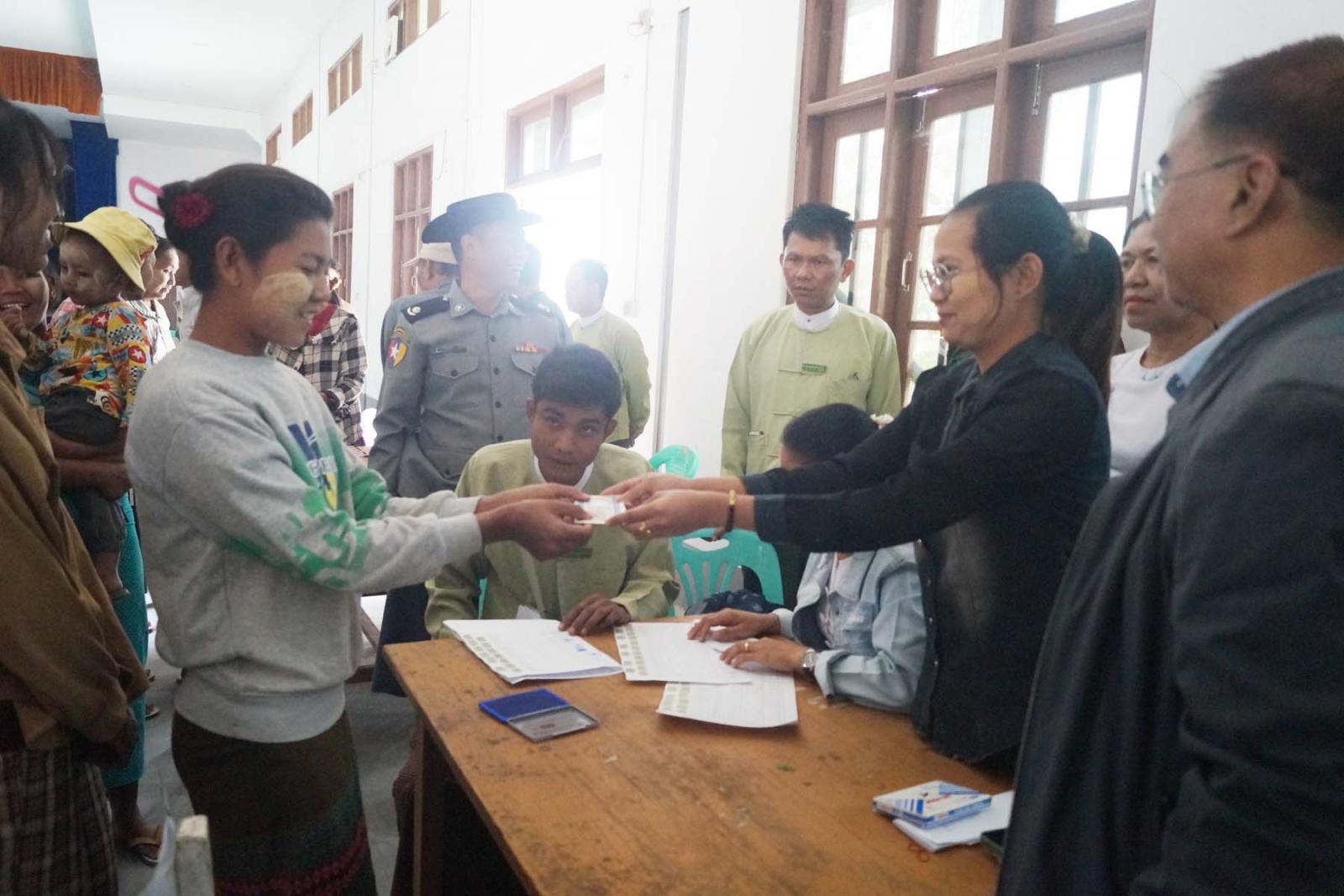 ထို့နောက် မြို့နယ်ထောက်ပံ့ငွေဖြန့်ခွဲရေးအဖွဲ့ဥက္ကက ထောက်ပံ့ငွေ ဖြန့်ခွဲရေးကော်မတီအဖွဲ့ဝင်များဖြစ်သော ဌာနဆိုင်ရာအကြီးအကဲ (၄)ဦးထံသို့ ထောက်ပံ့ငွေများ လွှဲပြောင်းပေးအပ်ခဲ့ပြီး ထောက်ပံ့ ငွေဖြန့်ခွဲရေးအဖွဲ့ (၄)ဖွဲ့ဖြင့် လောကနတ်ခန်းမအတွင်းရှိ ငွေထုတ်ပေးရန် သတ်မှတ်နေရာအသီးသီးတွင် ယာယီနေရပ်စွန့်ခွာနေရသူ တစ်ဦးချင်းစီအား သက်ဆိုင်ရာ ရပ်ကွက်/ကျေးရွာအုပ်ချုပ်ရေးမှူးများဖြင့် စိစစ်၍ ထောက်ပံ့ငွေများ စနစ်တကျ ထုတ်ပေးခဲ့ကြောင်း သိရသည်။