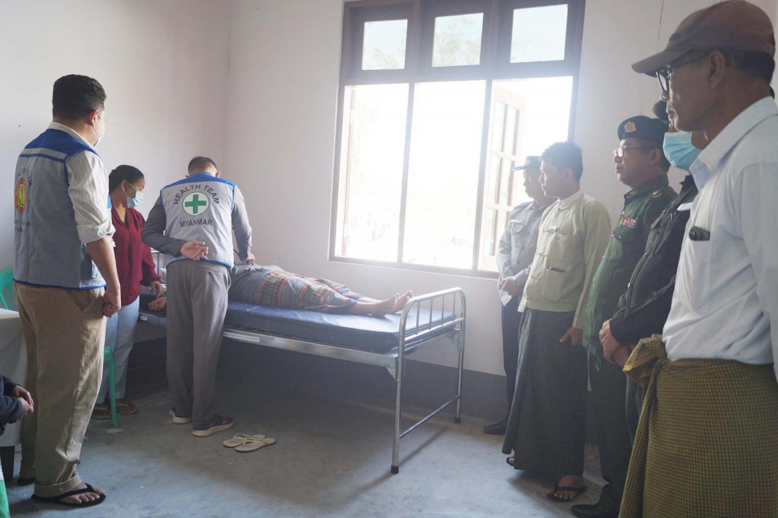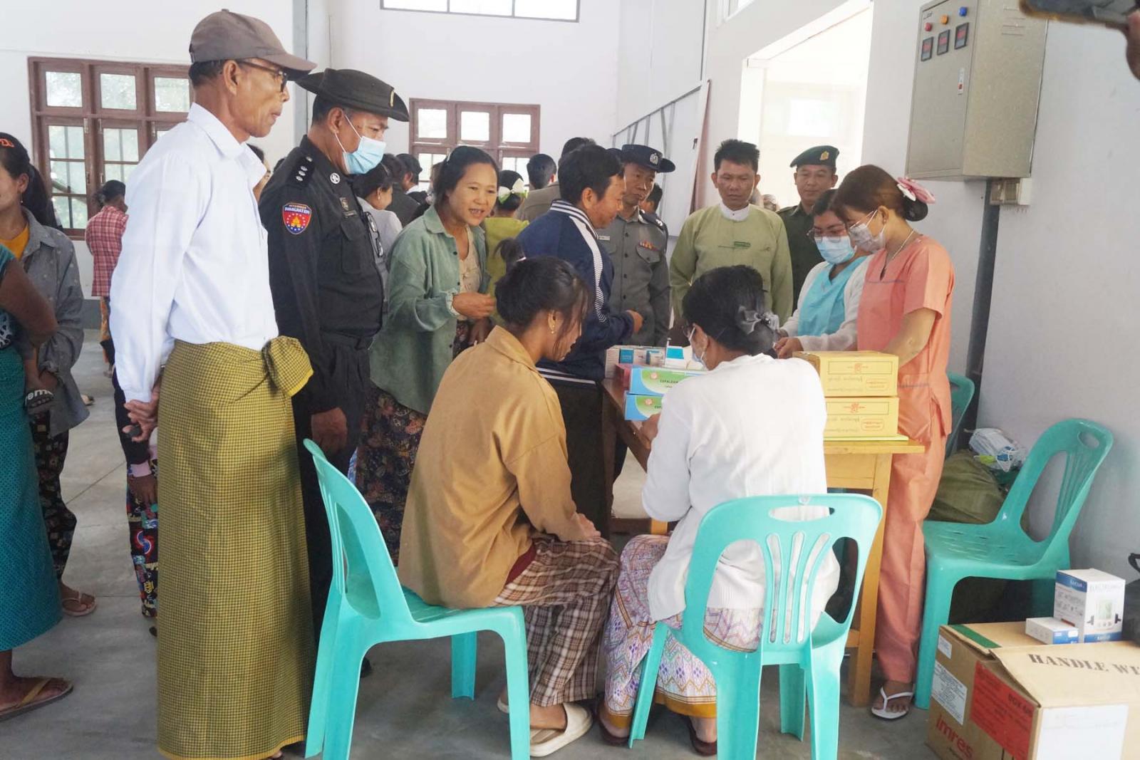 အဆိုပါ အခမ်းအနားသို့ တက်ရောက်လာသည့် ယာယီနေရပ်စွန့်ခွာနေရသူ မိသားစုဝင်များအား မြို့နယ်ကျန်းမာရေးဦးစီးဌာနမှူး ဒေါက်တာစိုးမိုးအောင်နှင့်အဖွဲ့က ကျန်းမာရေးစစ်ဆေးခြင်းနှင့် ကုသပေးခြင်းများ အခမဲ့ဆောင်ရွက်ပေးခဲ့ကြောင်း သိရသည်။