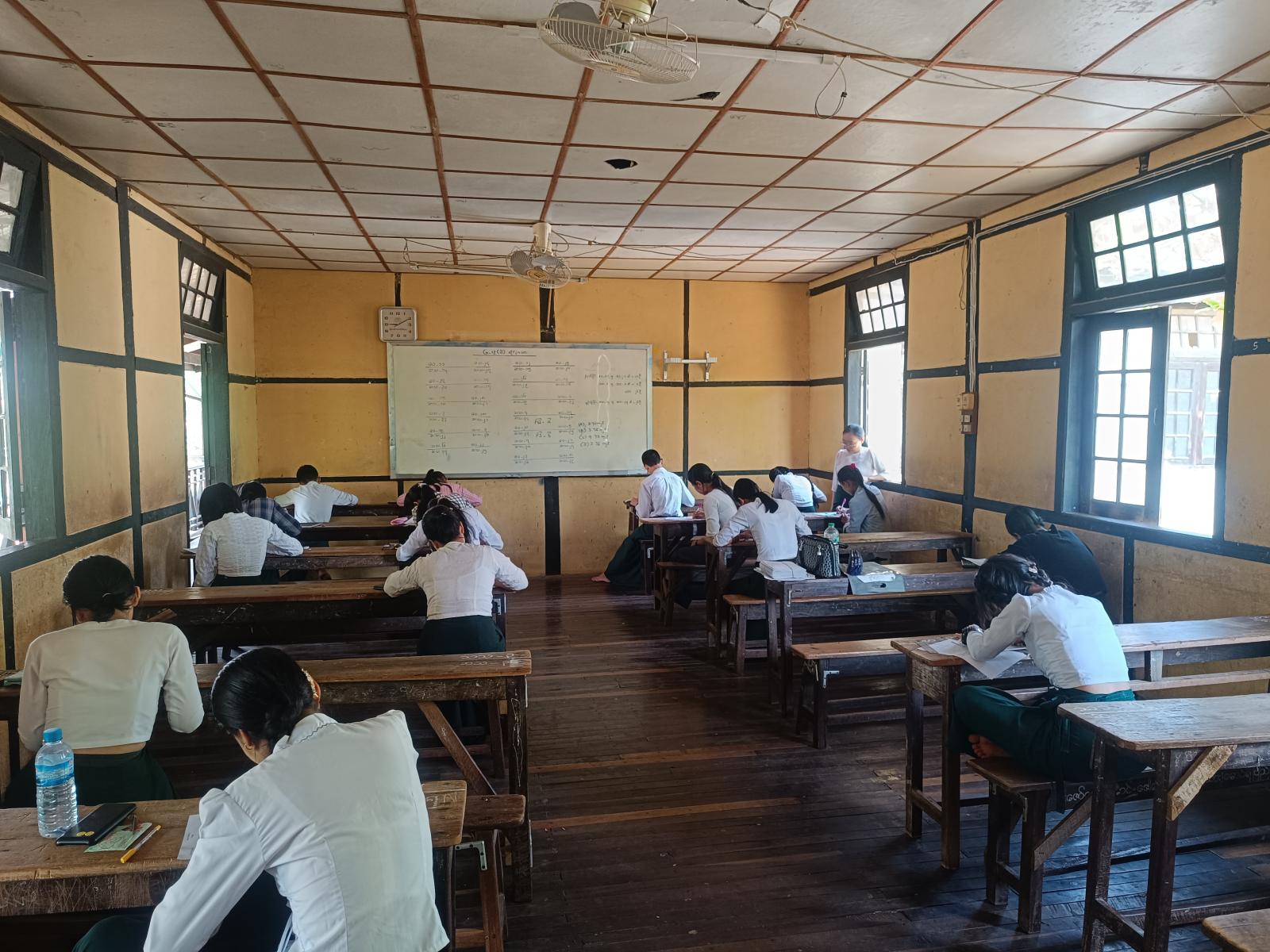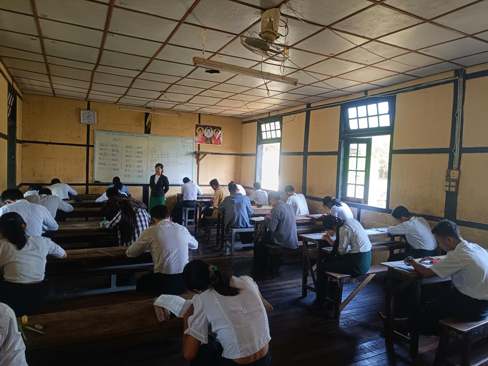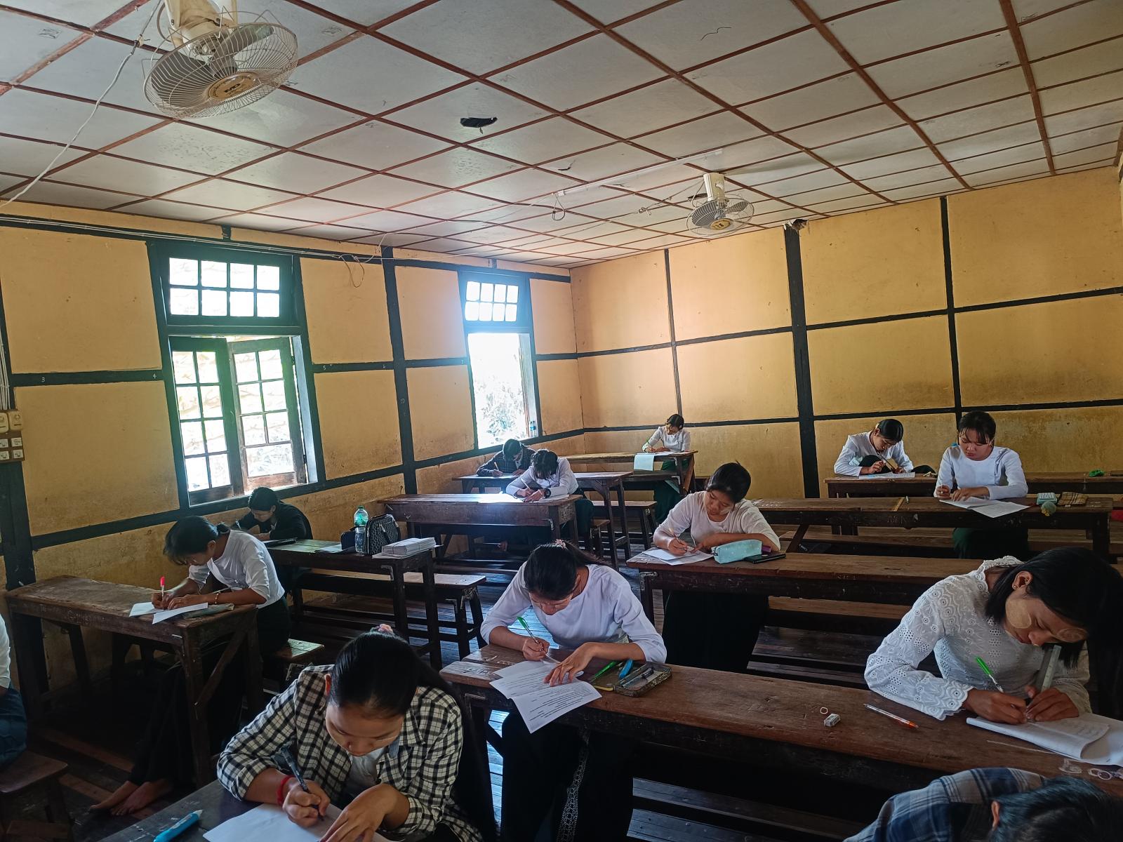ပဲခူးတိုင်းဒေသကြီး၊ ညောင်လေးပင်ခရိုင်၊ ညောင်လေးပင်မြို့နယ် အခြေခံပညာကျောင်းများ၌ ၂၀၂၄-၂၀၂၅ ပညာသင်နှစ် နှစ်ဆုံးကျောင်းတွင်း စစ်ဆေးခြင်းစာမေးပွဲကို ဖေဖော်ဝါရီလ (၂၀) ရက်နေ့မှ (၂၇) ရက်နေ့အထိ စစ်ဆေးသွားမည်ဖြစ်ရာ နောက်ဆုံးနေ့ (လူမှုရေး) ဘာသာရပ်အား ယနေ့နံနက် (၉) နာရီအချိန်တွင် ညောင်လေးပင်မြို့ အခြေခံပညာအထက်တန်းကျောင်းတွင် Grade 11 နှင့် Grade - 12 ကျောင်းသား/ကျောင်းသူများက ဖြေဆိုလျက်ရှိကြောင်း သိရသည်။