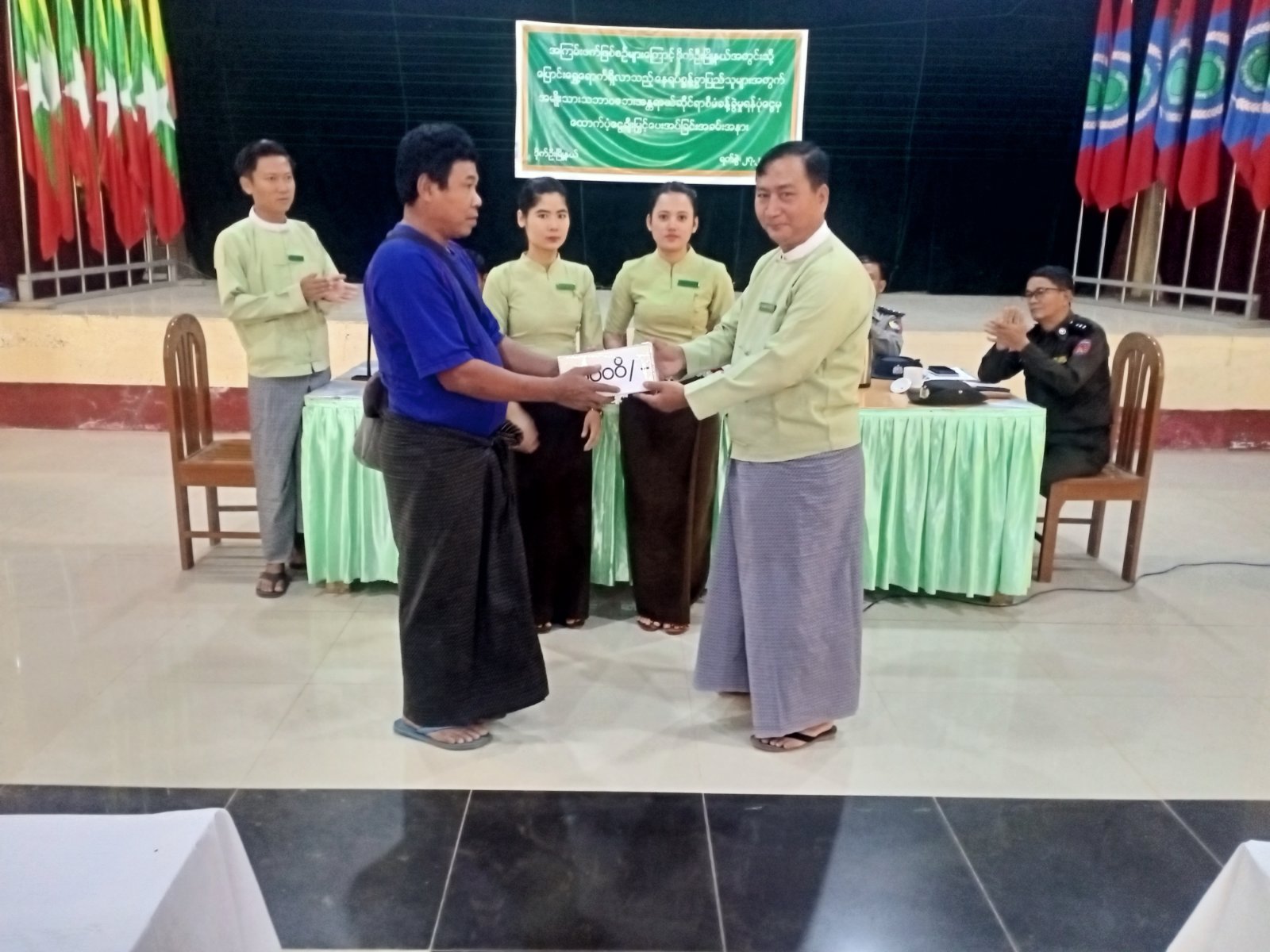 ထို့နောက် တက်ရောက်လာကြသော နေရပ်စွန့်ခွာပြည်သူများကိုယ်စားပြည်သူတစ်ဦးက ကျေးဇူးတင်စကားပြောကြားကာ အခမ်းအနားကိုရုပ်သိမ်းခဲ့ပါသည်။ ထိုသို့ထောက်ပံ့ရာ နေရပ်စွန့်ခွာပြည်သူတစ်ဦးအတွက် ၂၀၂၅ ခုနှစ် ဇန်နဝါရီလတစ်လစာကျပ်( ၂၀၀၀၀ )နှုန်းဖြင့်( ၄၉၄ )ဦးအတွက် သက်ဆိုင်ရာကာယကံရှင်များလက်ဝယ်အရောက် ထောက်ပံ့ပေးအပ်ခဲ့ကြောင်း သိရသည်။