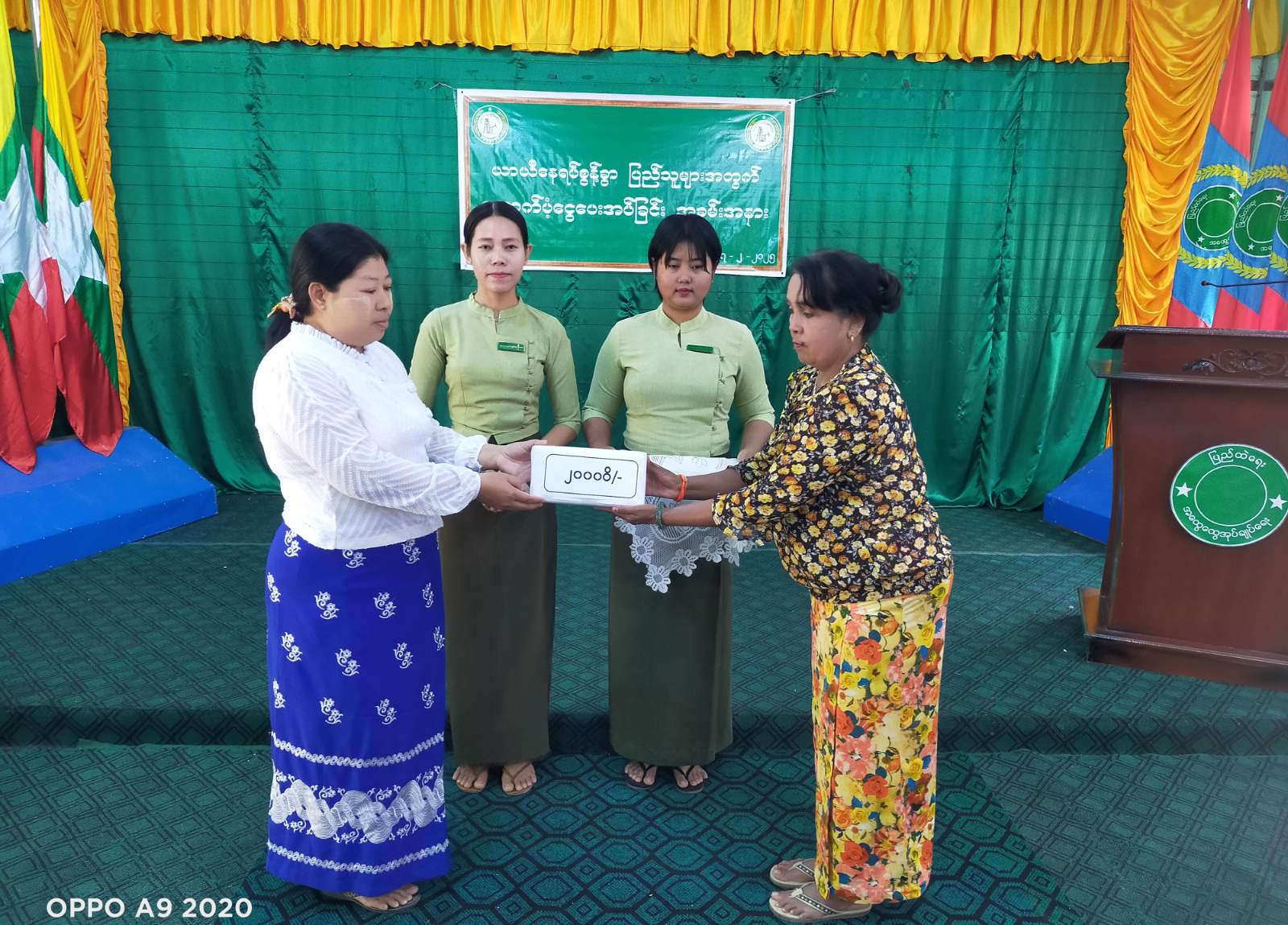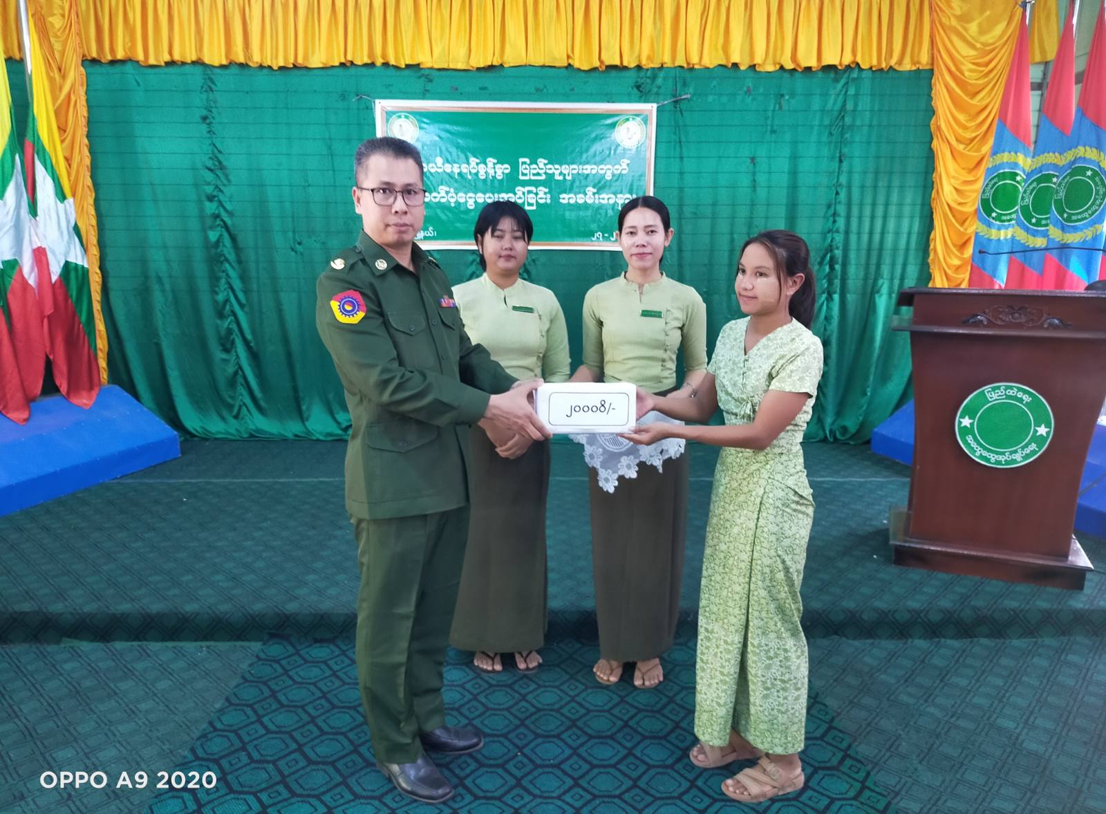 အခမ်းအနားတွင် ခရိုင်စီမံအုပ်ချုပ်ရေးအဖွဲ့ဥက္ကဋ္ဌ ဦးမြတ်ထွန်းဦးက ယာယီနေရပ်စွန့်ခွာပြည်သူများအား ထောက်ပံ့ငွေပေးအပ်ရခြင်းနှင့်ပတ်သက်၍ ရှင်းလင်းပြောကြားသည်။ ထို့နောက် ခရိုင်စီမံအုပ်ချုပ်ရေးအဖွဲ့ဥက္ကဋ္ဌ၊ မြို့နယ်စီမံအုပ်ချုပ်ရေးအဖွဲ့ဝင်များ၊ ဌာနဆိုင်ရာများက ယာယီနေရပ်စွန့်ခွာပြည်သူများအတွက် တစ်ဦးလျှင် ငွေကျပ် (၂၀၀၀၀/) နှုန်းဖြင့် ယာယီနေရပ်စွန့်ခွာပြည်သူ (၃၃) ဦးအတွက် ငွေကျပ်(၆၆၀၀၀၀/) အား ထောက်ပံ့ပေးအပ်ခဲ့ကြောင်း သိရသည်။