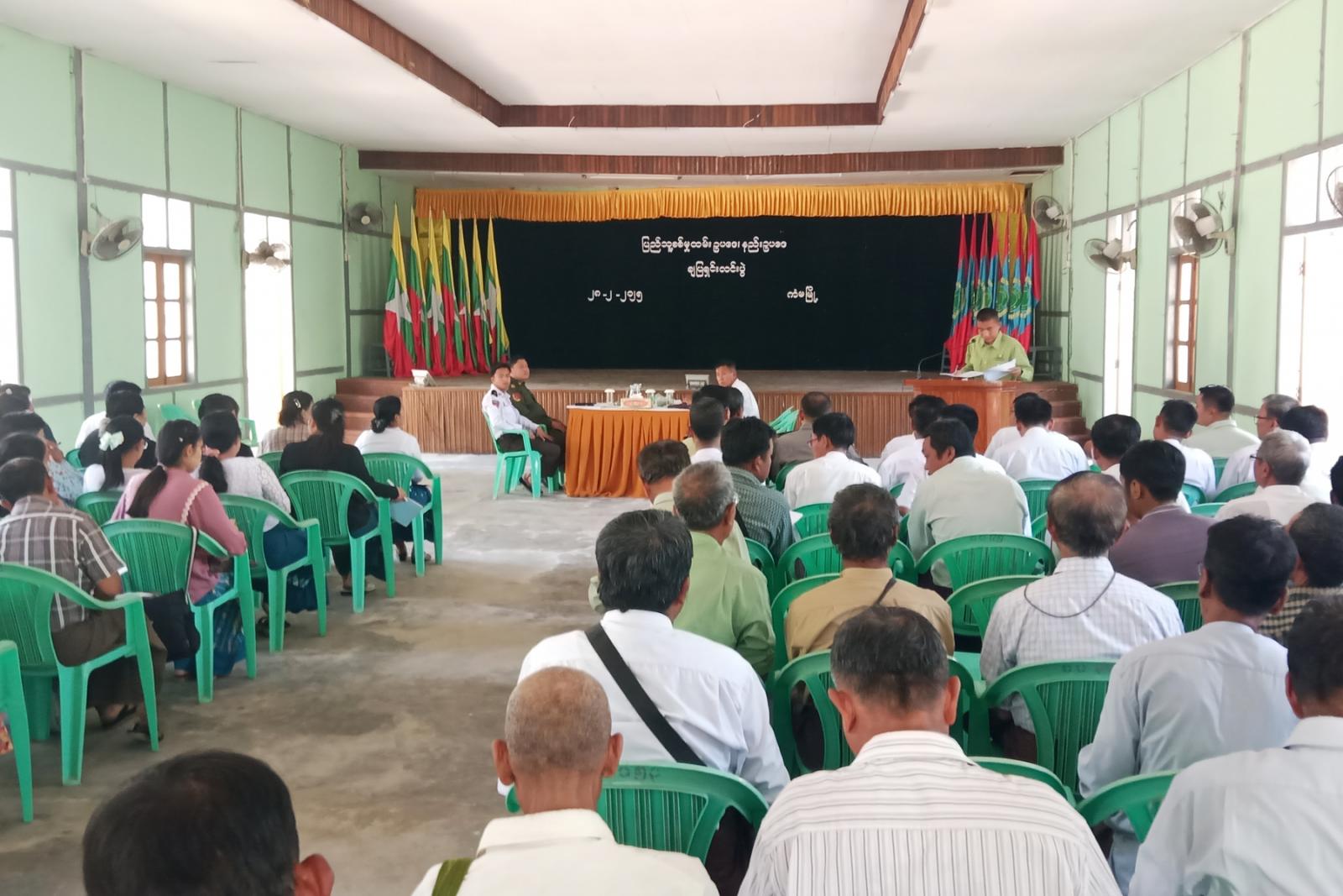 အဆိုပါအခမ်းအနားတွင် မြို့နယ်စီမံအုပ်ချုပ်ရေးအဖွဲ့ဥက္ကဋ္ဌ မြို့နယ်အုပ်ချုပ်ရေးမှူး ဦးအုန်းဌေးက အမှာစကားပြောကြားပြီးနောက် မြို့နယ်ရဲတပ်ဖွဲ့ ဒုရဲမှူးကျော်နိုင်ဦးနှင့် ဒုတိယဥပဒေအရာရှိ ဒေါ်မေသော်တာနိုင်တို့က ပြည်သူ့စစ်မှုထမ်းဥပဒေနှင့်ပတ်သက်၍ ရှင်းလင်းဆွေးနွေးခဲ့ကြကြောင်း သိရသည်။