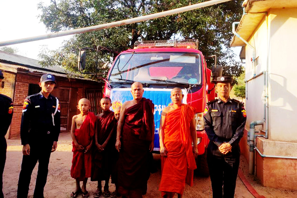 မြို့နယ်မီးသတ်ဦးစီးမှူး ဦးသန်းမြင့်နှင့် တပ်ဖွဲ့ဝင်များသည် ပြည်သူ့အကျိုးပြုလုပ်ငန်းအဖြစ်၊ နွေဦးရာသီကာလ သောက်သုံးရေ ခက်ခဲမှုရှိနေသည့် ဘူတာရပ်ကွက်ရှိ ရွှေတောင်ဦး ဘုန်းတော်ကြီးကျောင်းတွင် ကျောင်းနေသံဃာများနှင့် သာမဏေများ သောက်သုံးရေ ခက်ခဲမှု မရှိစေရေး အတွက် ရေဂါလန် ၁၆၀၀ သွားရောက်လှူဒါန်းခဲ့ကြကြောင်း သိရသည်။