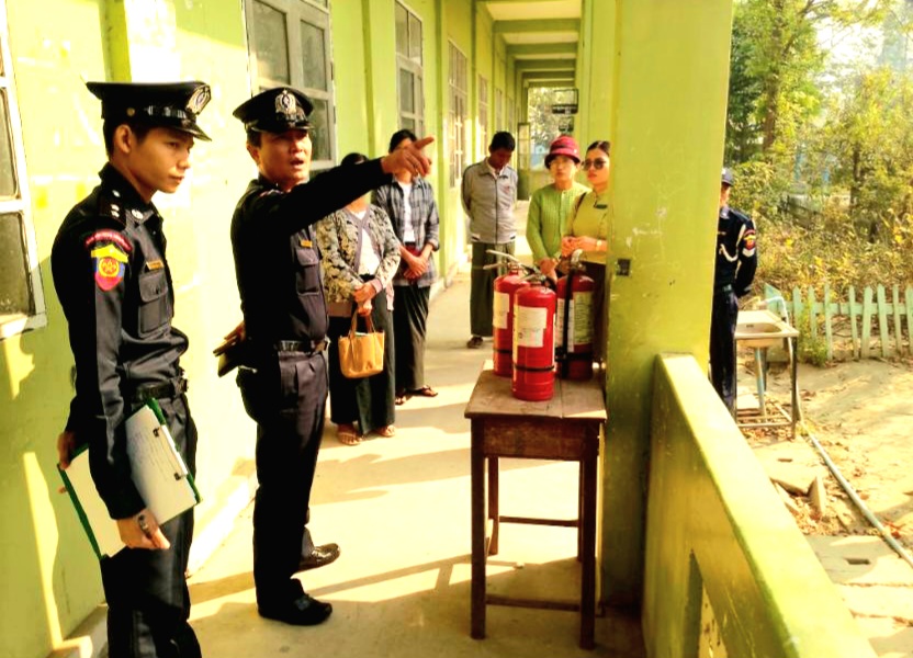 ထို့နောက် မြို့နယ်မီးသတ်ဦးစီးမှူးနှင့် ဌာနဆိုင်ရာတာဝန်ရှိသူများက တက္ကသိုလ်ဝင်စာမေးပွဲ ဖြေဆိုကျင်းပမည့် စာစစ်ဌာနများတွင် မီးဘေးအန္တရာယ်ကင်းဝေးစေရန် စာသင်ကျောင်းဆောင်များ၊ စာဖြေခန်းများနှင့် ကျောင်းပတ်ဝန်းကျင် မီးဘေးကြိုတင်ကာကွယ်ရေး စစ်ဆေးအကြံပြုခြင်း၊ လျှပ်စစ် မီးကြိုးများ သွယ်တန်းထားရှိမှုနှင့်ပတ်သက်၍ မီးဘေးလုံခြုံစိတ်ချရမှု ရှိ/မရှိ၊ မီးဘေးကာကွယ်ရေး သုံးပစ္စည်းများ ကြိုတင်ပြင်ဆင်ထားရှိမှု၊ အရေးပေါ်မီးငြှိမ်းသတ်ရေးလုပ်ငန်းအတွက် ရေသိုလှောင် ထားရှိမှုနှင့် ပြင်ပမှမီးကူးစက်ပြန့်ပွားမှု မရှိစေရေး သန့်ရှင်းရေးပြုလုပ်ဆောင်ရွက်ထားမှု အခြေအနေများကို လိုက်လံကြည့်ရှုစစ်ဆေးပြီး မီးဘေးလုံခြုံရေးအတွက် ဖြည့်စွက်ဆောင်ရွက်ရန် လိုအပ်သည်များကို ဆွေးနွေးမှာကြားခဲ့ကြောင်း သိရသည်။