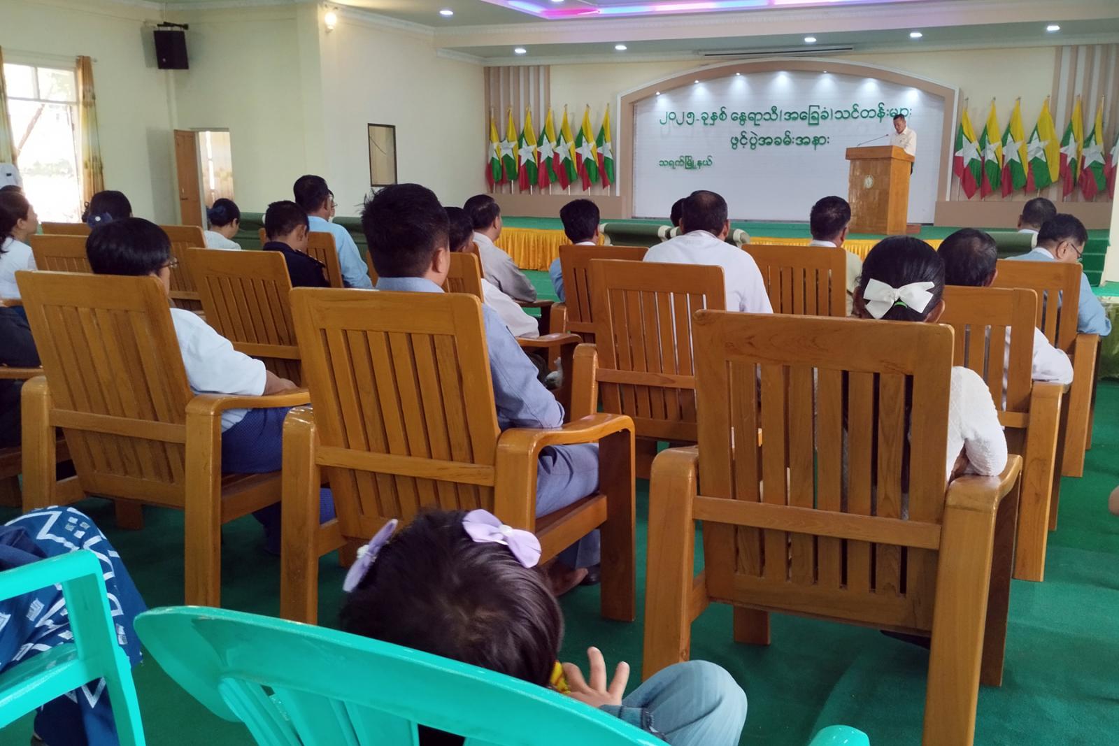 မကွေးတိုင်းဒေသကြီး သရက်မြို့၌ ၂၀၂၅ ခုနှစ်၊ နွေရာသီအခြေခံသင်တန်းများ ဖွင့်ပွဲအခမ်းအနားကျင်းပခြင်းကို ယနေ့နံနက်(၁၀)နာရီ ခရိုင်ခန်းမ၌ ကျင်းပခဲ့ရာ ခရိုင်စီမံအုပ်ချုပ်ရေးအဖွဲ့ဥက္ကဋ္ဌနှင့် အဖွဲ့ဝင်များ၊ ခရိုင်/မြို့နယ်ဌာနဆိုင်ရာအကြီးအကဲများ၊ သင်တန်းသား/သင်တန်းသူများ တက်ရောက်ကြသည်။