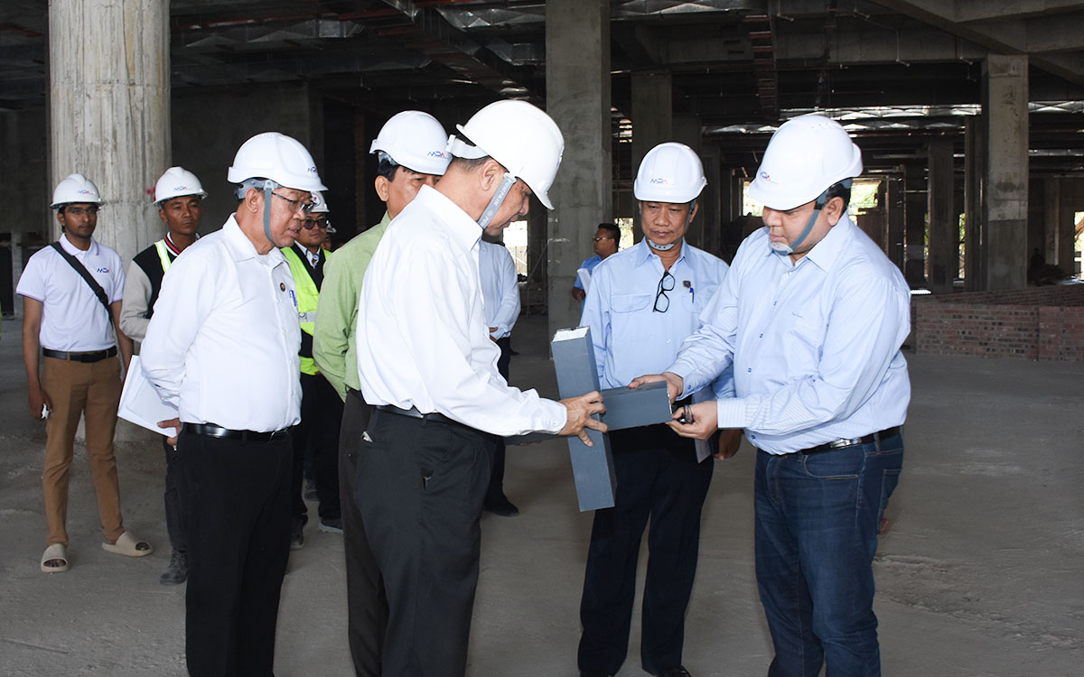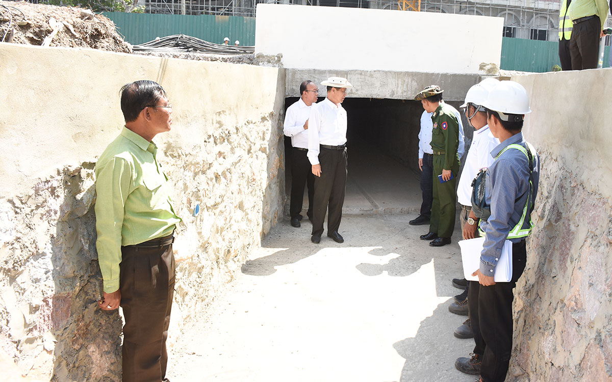 ဆက်လက်၍ တိုင်းဒေသကြီးဝန်ကြီးချုပ်နှင့်အဖွဲ့သည် တည်ဆောက်ရေး လုပ်ငန်းများပြီးစီးမှု အခြေအနေများနှင့် ဈေးကြီးမှထွက်ရှိမည့် စွန့်ပစ်ရေထွက်ကြောင်းများအတွက် လမ်းဖြတ်ရေမြောင်း တည်ဆောက်နေမှုအခြေအနေများကို လိုက်လံကြည့်ရှုခဲ့သည်။
