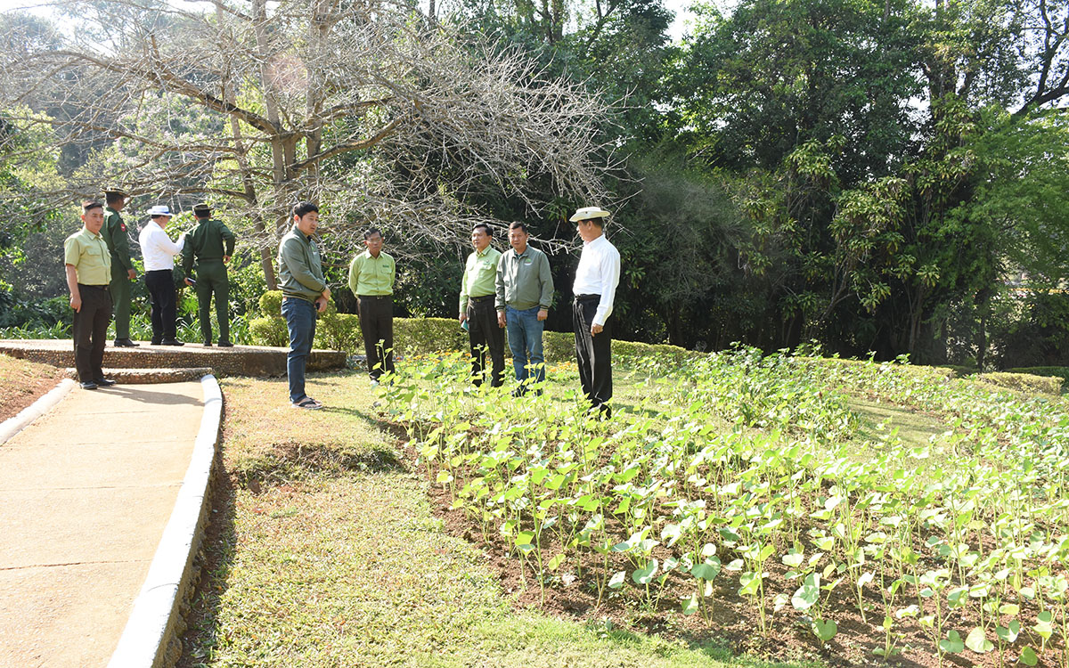 ၎င်းနောက် တိုင်းဒေသကြီးဝန်ကြီးချုပ်နှင့်အဖွဲ့သည် ပြင်ဦးလွင်မြို့ အမျိုးသားကန်တော်ကြီးဥယျာဉ်သို့ ရောက်ရှိပြီး ကန်တော်ကြီးဥယျာဉ် ၏ ခြံစည်းရိုးများအား စနစ်တကျပြန်လည်ကာရံဆောင်ရွက်နေမှု၊ ကန်အမှတ် (၃) ရှိ သစ်သားတံတားအား ပျဉ်းကတိုးသစ်မာများဖြင့် သင်္ကြန်မတိုင်မီအပြီး ပြန်လည် ပြင်ဆင်ခင်းကျင်းနေမှု၊ ဥယျာဉ်အတွင်းရှိ ဂင်ဂိုပင် (ကမ္ဘာဦးပင်) ပတ်လည်တွင် မြေယာရှုခင်းအလှနှင့် လျှောက်လမ်းဆောင်ရွက်ပြီးစီးမှုတို့ကို လိုက်လံကြည့်ရှုပြီး တာဝန်ရှိသူများ၏ ရှင်းလင်းတင်ပြချက်များအပေါ် လိုအပ်သည်များကို ပေါင်းစပ်ညှိနှိုင်းဖြည့်ဆည်း ဆောင်ရွက်ပေးခဲ့ကြောင်း သိရသည်။