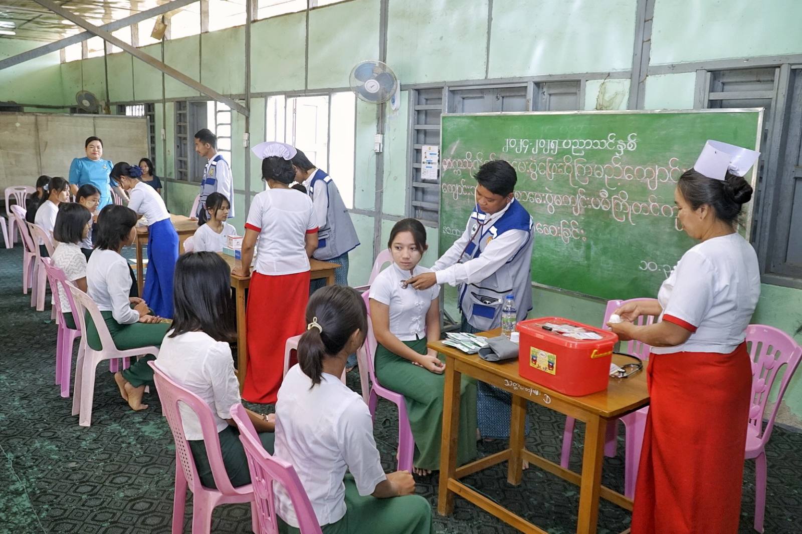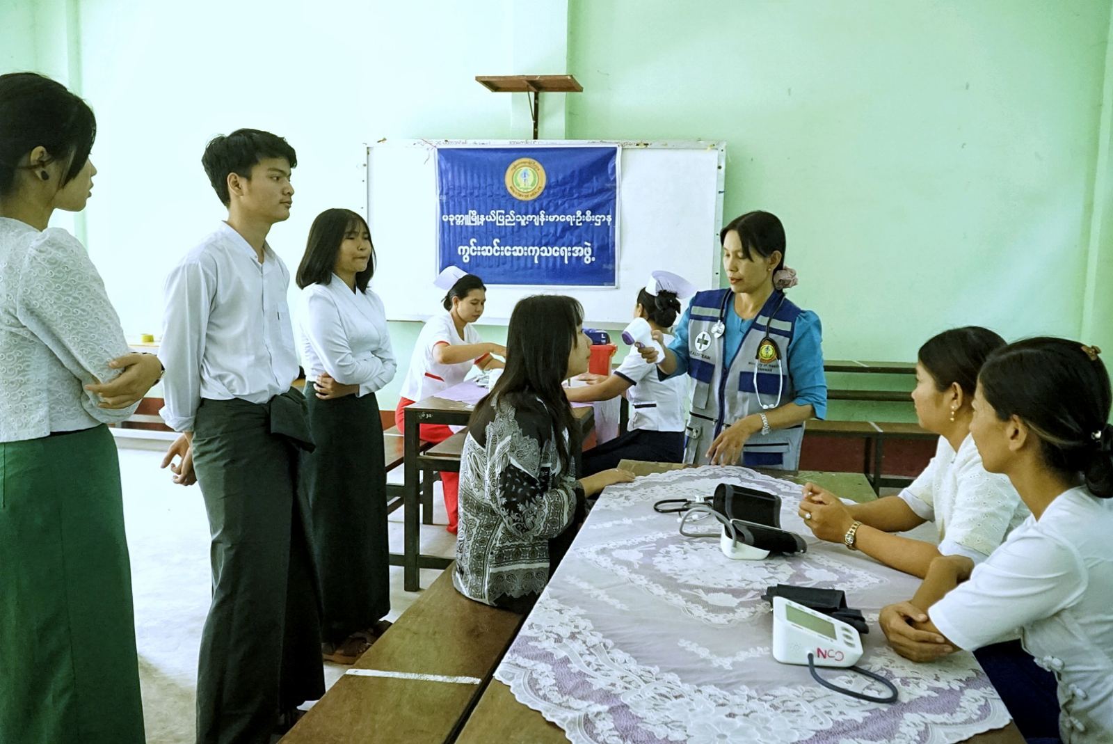 မကွေးတိုင်းဒေသကြီး၊ ပခုက္ကူမြို့၌ တက္ကသိုလ်ဝင်စာမေးပွဲဖြေဆိုကြမည့် ကျောင်းသား၊ကျောင်းသူများအား ကျန်းမာရေးစစ်ဆေးပေးခြင်း၊ ဆေးကုသမှုပေးခြင်း၊ လိုအပ်သည့်ဆေးဝါးများပေးဝေခြင်းတို့ကို ယနေ့နံနက် ၉ နာရီအချိန်က အခြေခံပညာကျောင်းများ၌ ကွင်းဆင်းဆောင်ရွက်ကြသည်။