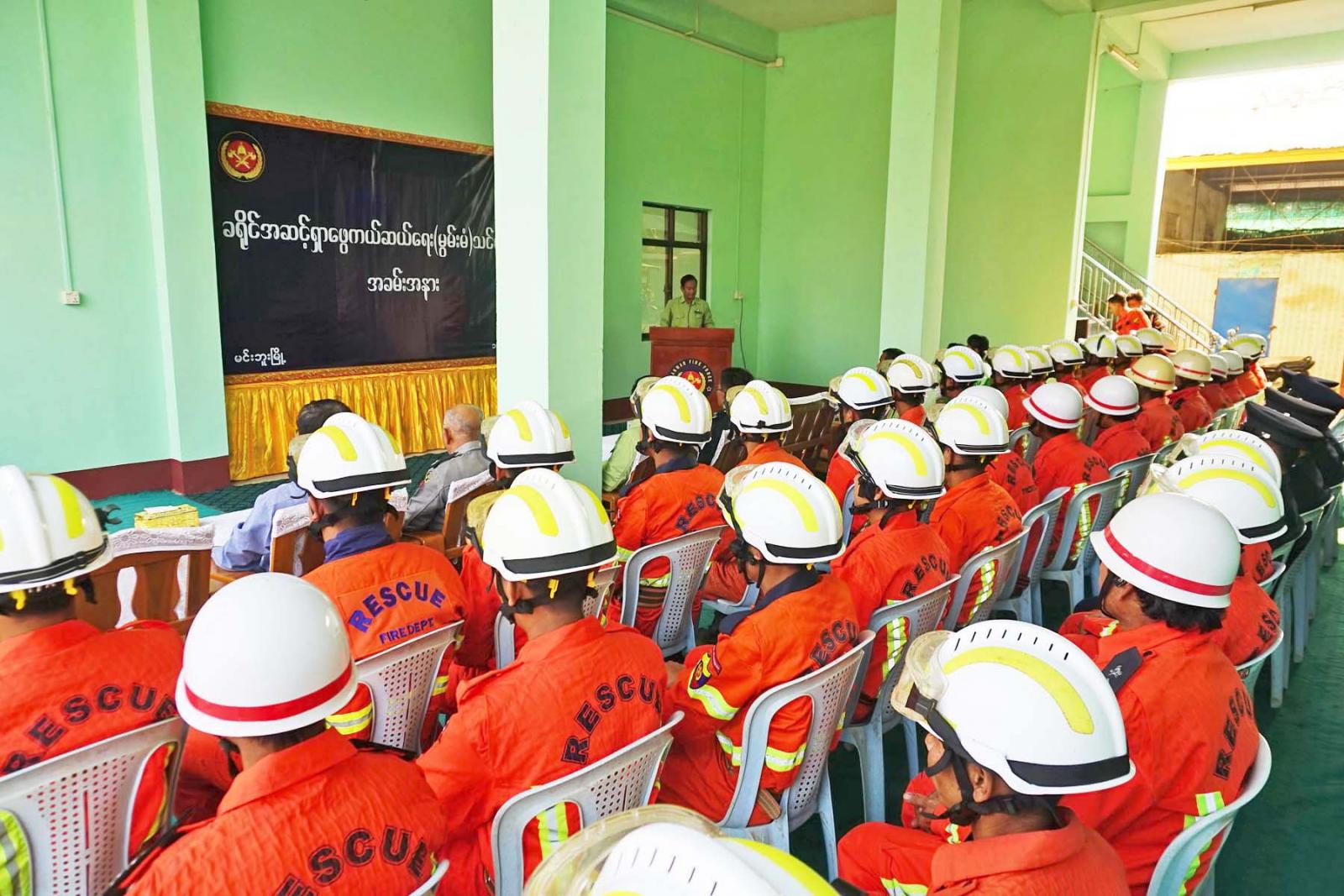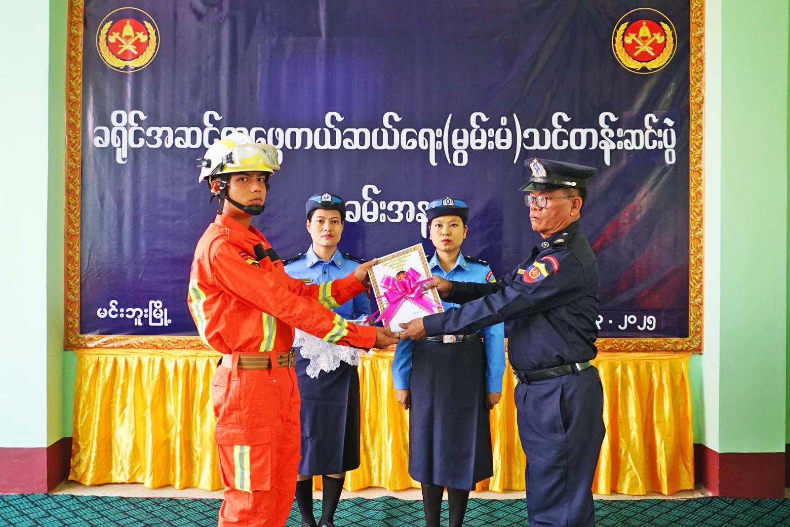 သင်တန်းဆင်းပွဲအခမ်းအနားတွင် မင်းဘူးခရိုင်စီမံအုပ်ချုပ်ရေးအဖွဲ့ဥက္ကဋ္ဌ ခရိုင်အုပ်ချုပ်ရေးမှူး ဦးအေးလွင်က သင်တန်းဆင်းအမှာစကားပြောကြားပြီး၊ ခရိုင်မီးသတ်ဦးစီးမှူး ဦးထွန်းထွန်းက သင်တန်းဆင်းလက်မှတ်များပေးအပ်ကာ တာဝန်ရှိသူများက အရေးပေါ်ရှာဖွေကယ်ဆယ်ရေးသုံးပစ္စည်းကိရိယာ၊ မော်တော်ယာဉ်၊ စက်ယန္တာယားကြီးများနှင့် မြို့ဧရိယာကို စောင့်ကြည့်လွှမ်းခြုံနိုင်သော မီးဘေးလုံခြုံရေးကင်မရာ (Command and Control Center Room) ဆောင်ရွက်ထားရှိမှုအား ကြည့်ရှုလေ့လာခဲ့သည်။