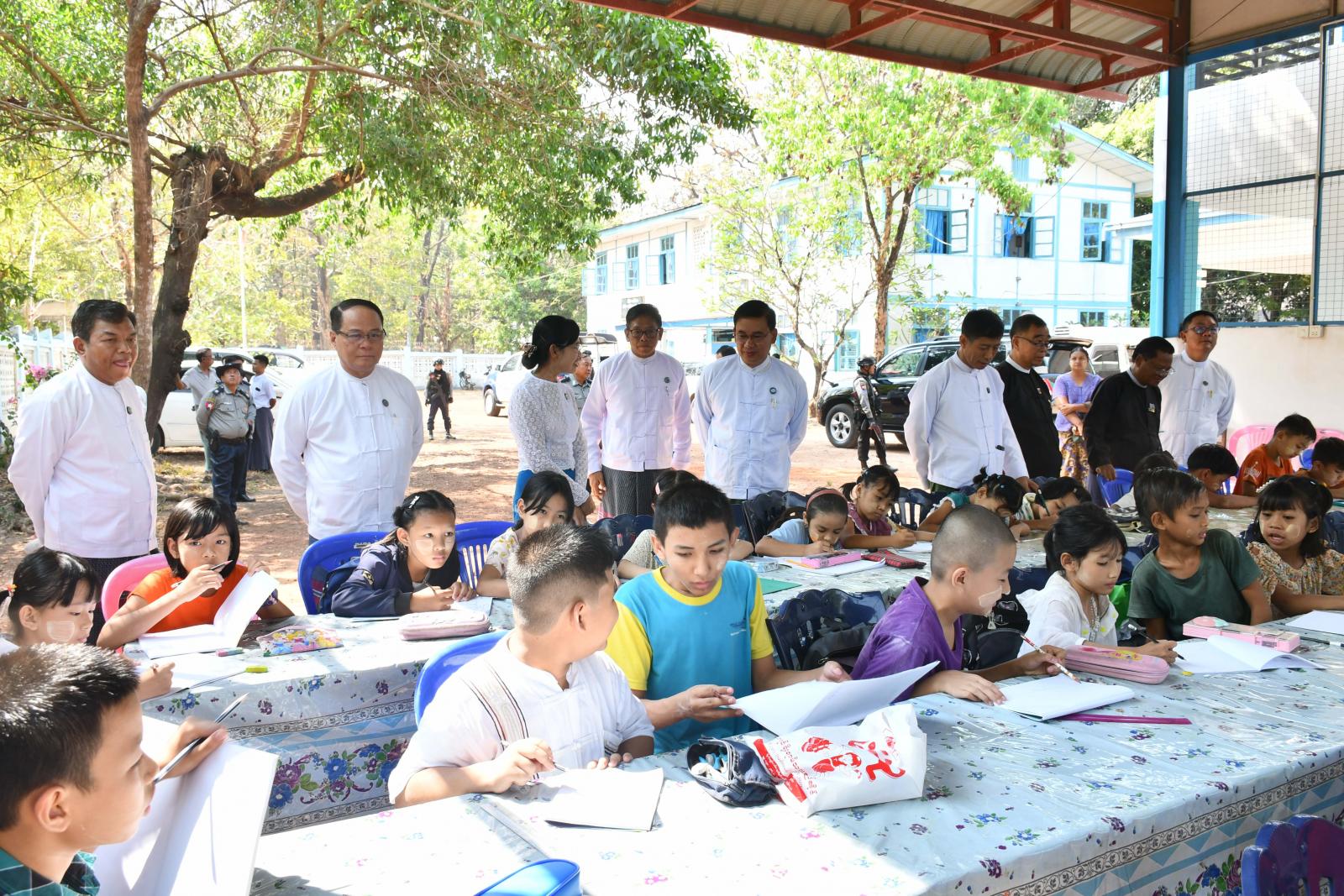 ထို့နောက် ပြန်ကြားရေးနှင့်ပြည်သူ့ဆက်ဆံရေးဦးစီးဌာန ညွှန်ကြားရေးမှူး ဦးမောင်မောင်က သင်တန်းဆိုင်ရာများနှင့် ပတ်သက်၍ ရှင်းလင်းတင်ပြပြီး ပြည်နယ်ဝန်ကြီးချုပ်က သင်တန်း(၃)မျိုး၊ ရက်ပေါင်း(၂၀)အတွက် ငွေကျပ် သိန်း(၄၀)ကျပ်ကို ပြည်နယ်ညွှန်ကြားရေးမှူးထံ ချီးမြှင့်ပေးအပ်ကာ အမှတ်(၄) အခြေခံပညာအထက်တန်းကျောင်းမှ ကျောင်းသူလေးများက ပညာဘဏ်တိုက်စာကြည့်တိုက်သို့ သွားကြစို့ သီချင်းဖြင့် ကပြဖျော်ဖြေကြရာ ပြည်နယ်ဝန်ကြီးချုပ်နှင့် တာဝန်ရှိသူများက ဂုဏ်ပြုဆုငွေများ ပေးအပ်ချီးမြှင့်ခဲ့ကြသည်။