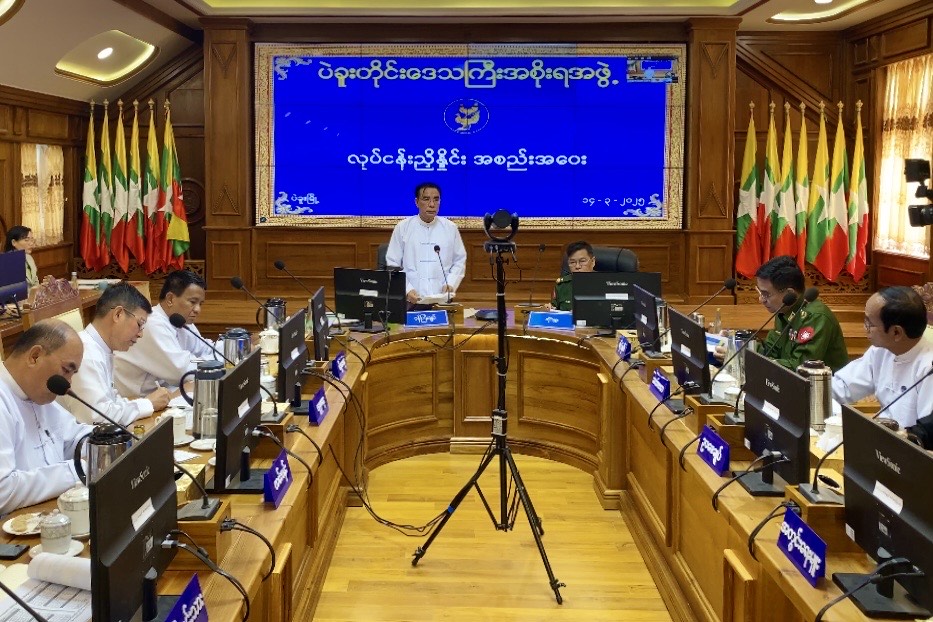 ပဲခူးတိုင်းဒေသကြီးအစိုးရအဖွဲ့ရုံး၊ တော်ဝင်ဟံသာအစည်းအဝေးခန်းမ၌ ယနေ့နံနက်ပိုင်းက ပဲခူးတိုင်းဒေသကြီးအစိုးရအဖွဲ့၊ ဝန်ကြီးချုပ် ဦးမျိုးဆွေဝင်း ဦးဆောင်၍ လုပ်ငန်းညှိနှိုင်း အစည်းအဝေး ကျင်းပပြုလုပ်ရာ တောင်ပိုင်းတိုင်းစစ်ဌာနချုပ် တိုင်းမှူး ဗိုလ်ချုပ်ကြည်သိုက်၊ အစိုးရအဖွဲ့ဝင်ဝန်ကြီးများ၊ တိုင်းဒေသကြီးအဆင့်ဌာနဆိုင်ရာများ၊ ခရိုင်/မြို့နယ် စီမံအုပ်ချုပ်ရေးအဖွဲ့ဥက္ကဋ္ဌများ တက်ရောက်ခဲ့သည်။