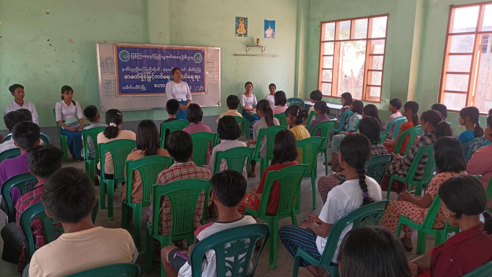 ထိုသို့ ဆောင်ရွက်ရာတွင် ပြန်ကြားရေးနှင့်ပြည်သူ့ဆက်ဆံရေးဦးစီးဌာနမှ ဦးစီးအရာရှိ ဒေါ်ချစ်နှင်းသုန်က လူငယ်နှင့်စာဖတ်ခြင်းအကျိုးကျေးဇူးများ၊ လူကုန်ကူးမှုတားဆီးကာကွယ်ရေးနှင့် ကလေးအလုပ်သမားပပျောက်ရေး အကြောင်းအရာတို့ကို အသိပညာပေးဆွေးနွေးဟောပြောသည်။