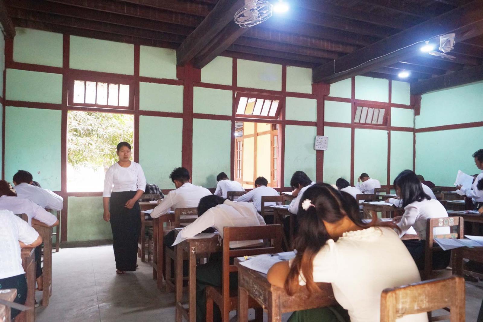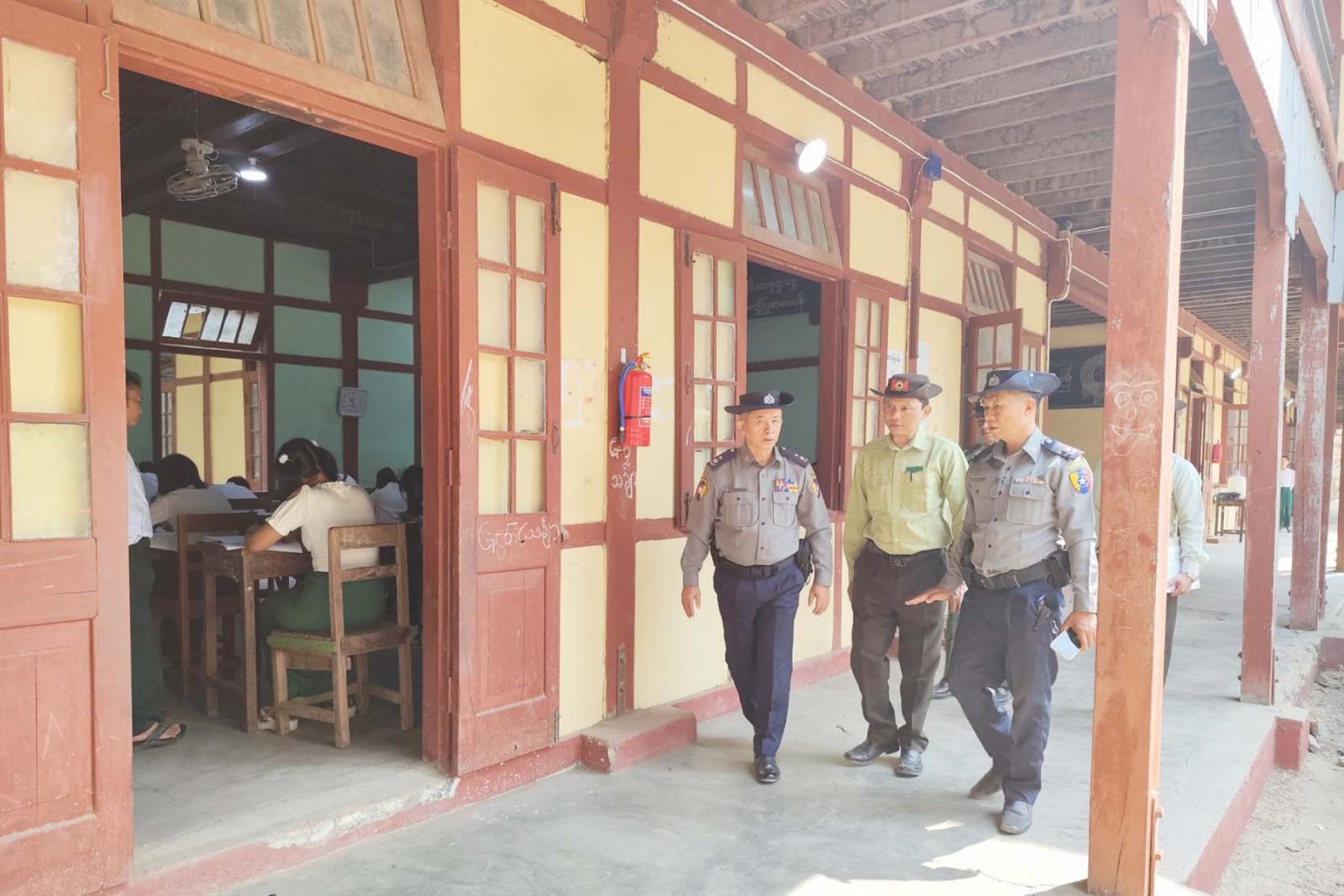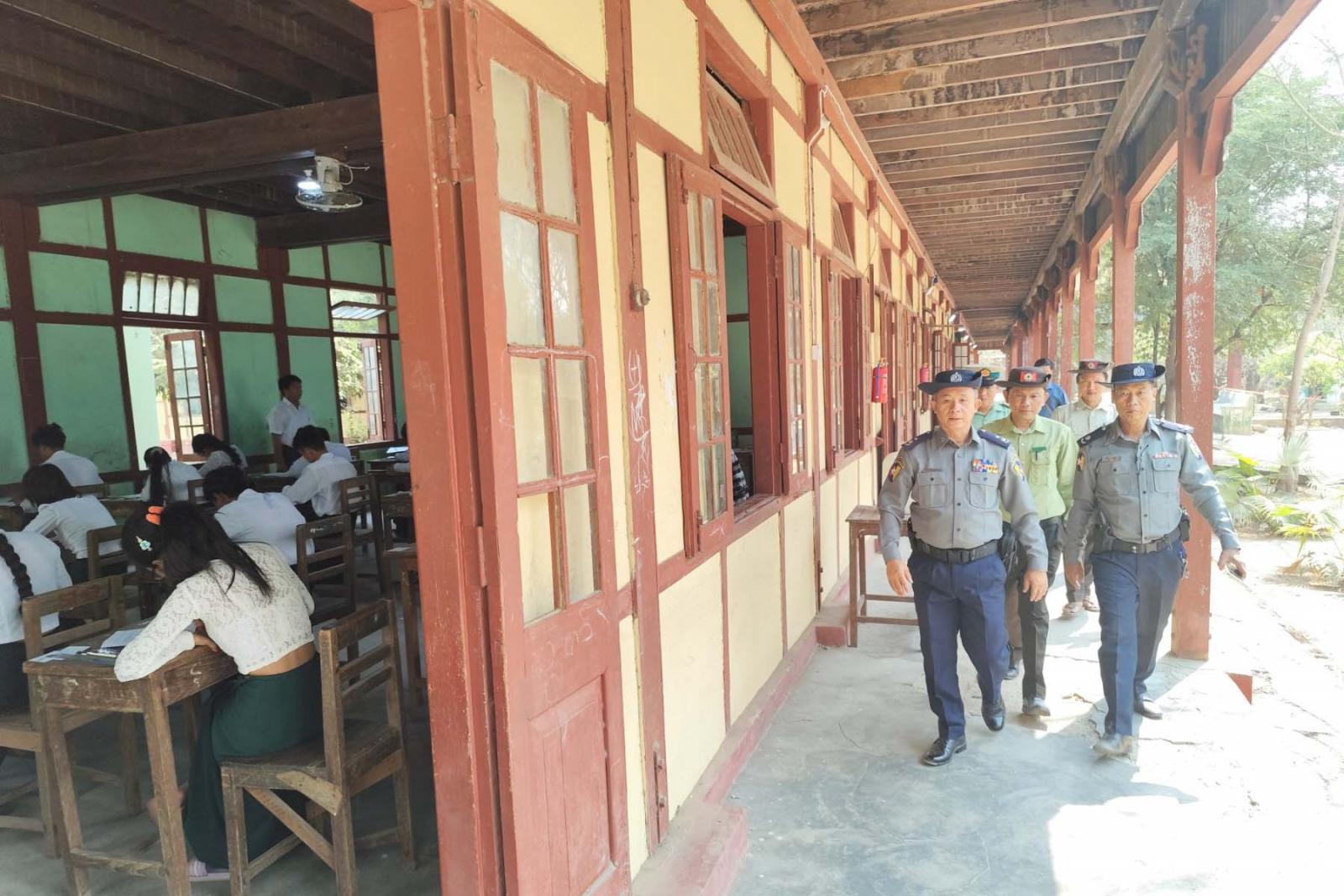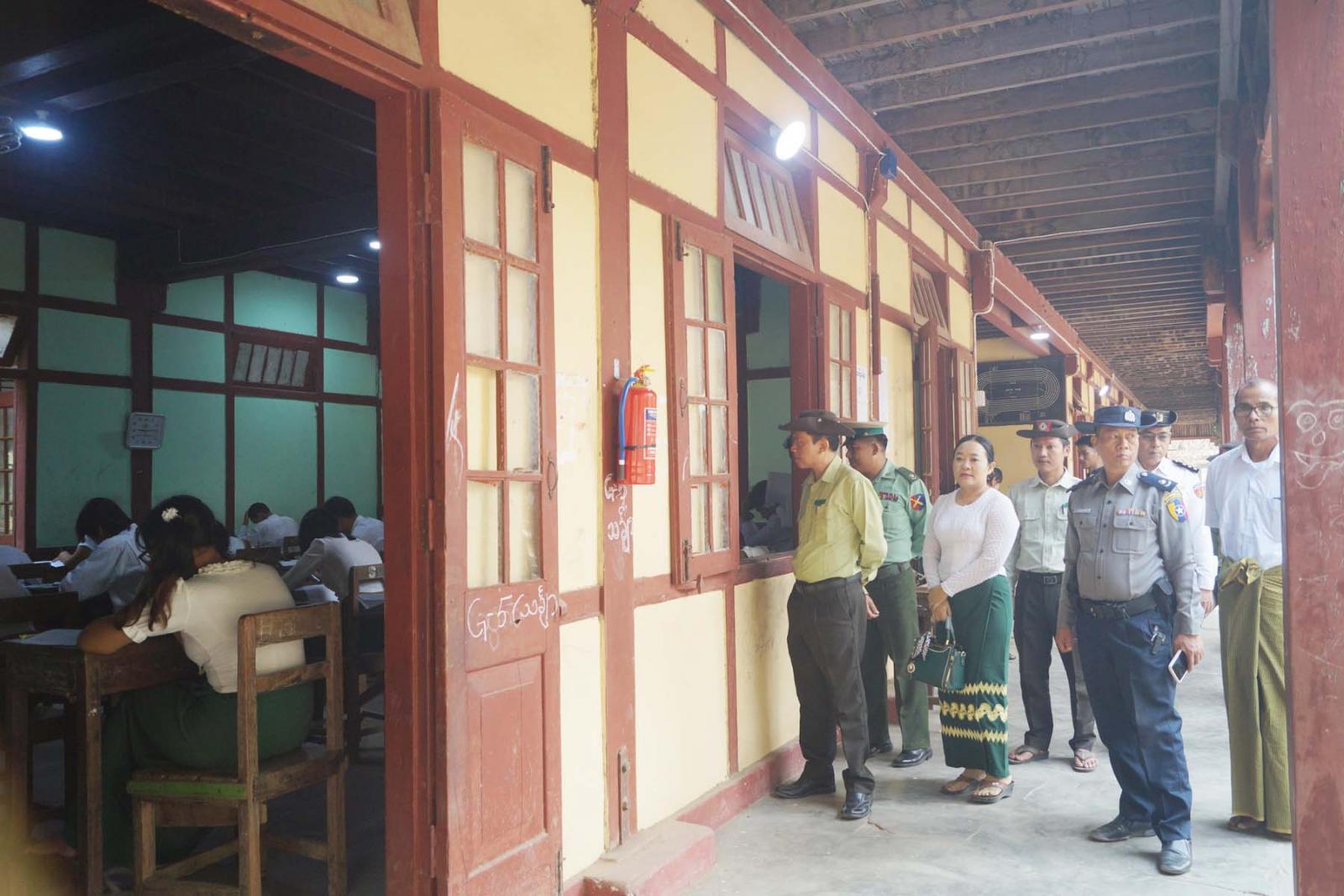 ထိုသို့ကြည့်ရှုအားပေးရာတွင် ခရိုင်စီမံအုပ်ချုပ်ရေးအဖွဲ့အတွင်းရေးမှူး ရဲမှူးကြီးခင်မောင်ဇော်၊ မြို့နယ်စီမံအုပ်ချုပ်ရေးအဖွဲ့ဥက္က ဦးမျိုးမင်းသိန်းနှင့်အဖွဲ့ဝင်များ၊ တာဝန်ရှိသူများက ကျောင်းသား၊ ကျောင်းသူများ တက္ကသိုလ်ဝင်စာမေးပွဲ အေးချမ်းစွာ ဖြေဆိုနေကြသည့် စာဖြေခန်းများသို့ သွားရောက်ကြည့်ရှုအားပေးကြပြီးစာစစ်ဌာနတွင် တာဝန်ထမ်းဆောင်ကြသည့် ကြီးကြပ်ရေးမှုးများ၊ တာဝန်ရှိသူများ၏ မေးခွန်း/အဖြေလွှာများ လုံခြုံရေးကဏ္ဍအလိုက်ဆောင်ရွက်မှု၊ ကျန်းမာရေးစောင့်ရှောက်မှု၊ ဌာနဆိုင်ရာ တာဝန်ရှိသူများ၏ ကျောင်းဝင်းအတွင်း/အပြင် မီးဘေးလုံခြုံရေးလုပ်ငန်းများ ဆောင်ရွက်မှုများအား လှည့်လည်ကြည့်ရှုစစ်ဆေးရာ စနစ်တကျဆောင်ရွက်ထားရှိကြောင်း သိရ သည်။