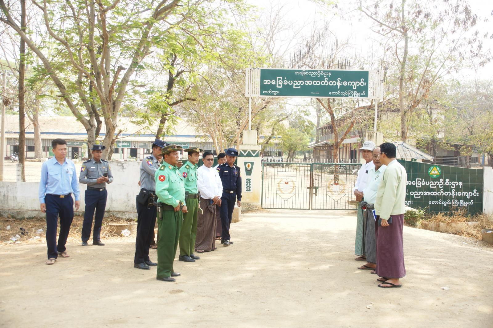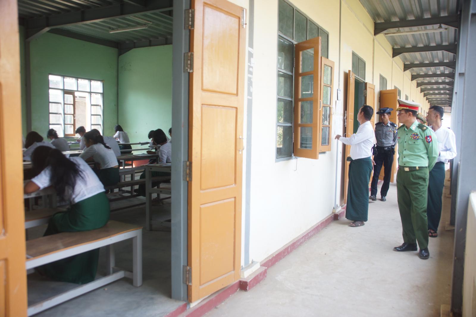မကွေးတိုင်းဒေသကြီး၊ မကွေးခရိုင်၊ တောင်တွင်းကြီးမြို့နယ် အမှတ်(၁)အခြေခံပညာအထက်တန်းကျောင်း(စာစစ်ဌာန)နှင့် ဆတ်သွားအခြေခံပညာအထက်တန်းကျောင်း(စာစစ်ဌာန)တို့၌ ယမန်နေ့နံနက်ပိုင်းမှစတင်၍ ဖြေဆိုလျက်ရှိရာ ကျောင်းသား၊ ကျောင်းသူများ အဆင်ပြေချောမွေ့စွာ ဖြေဆိုနိုင်ရေး တောင်တွင်းကြီးတပ်နယ် တပ်နယ်မှူး ဗိုလ်မှူးချုပ် ထွန်းထွန်းနိုင်၊ အမှတ်(၇)စစ်အခြေခံလေ့ကျင့်ရေးတပ် နယ်မြေခံတပ်မှူး ဗိုလ်မှူးကြီး ကျော်သန်းဆွေ၊ တောင်တွင်းကြီးမြို့နယ်စီမံအုပ်ချုပ်ရေးအဖွဲ့ဥက္ကဋ္ဌ ဦးကျော်ဇင်ဦးနှင့် အဖွဲ့ဝင်များ၊ မြို့နယ်ပညာရေးမှူး ဆရာမကြီး ဒေါ်ခင်သန်းဌေးနှင့် ဌာနဆိုင်ရာတာဝန်ရှိသူများက မြန်မာစာဘာသာရပ်ဖြေဆိုနေသည့် ကျောင်းသား၊ ကျောင်းသူများအား ကြည့်ရှုအားပေးခဲ့သည်။
