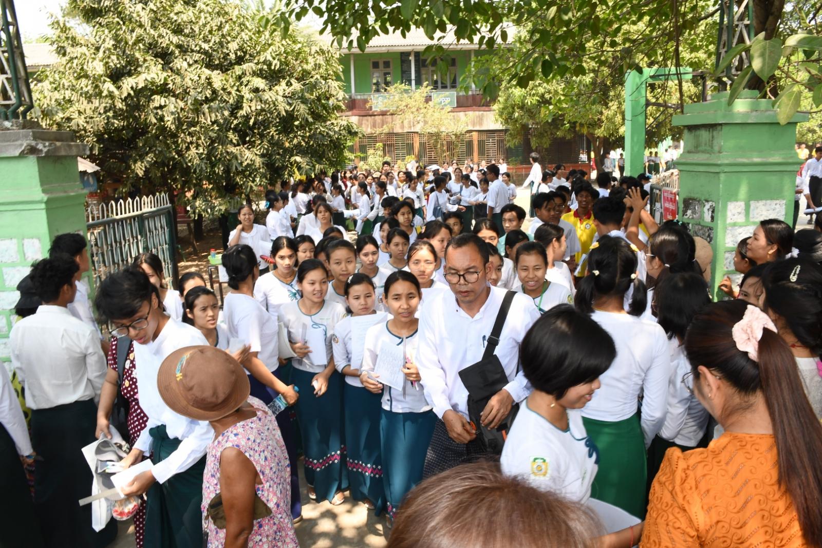 ၂၀၂၅ ခုနှစ် တက္ကသိုလ်ဝင်စာမေးပွဲ မတ်လ ၁၇ ရက်နေ့မှ ၂၂ ရက်နေ့အထိ ကျင်းပသွားမည်ဖြစ်ပြီး မြန်မာစာ၊ အင်္ဂလိပ်စာ၊ သင်္ချာ၊ ဓာတုဗေဒ၊ ပထဝီဝင်၊ ရူပဗေဒ၊ သမိုင်း၊ ဇီဝဗေဒနှင့် ဘောဂဗေဒဘာသာရပ်တို့ကို နံနက် (၉)နာရီအချိန်မှ (၁၂)နာရီအချိန်ထိ ဖြေဆိုရမည်ဖြစ်သည်။ ကျောင်းသား၊ ကျောင်းသူများ စာမေးပွဲဖြေဆိုရာတွင် အေးချမ်းစွာဖြေဆိုနိုင်ရေးအတွက် ခရိုင်စီမံအုပ်ချုပ်ရေးအဖွဲ့ဥက္ကဋ္ဌ ဦးကျော်စိုးလွင်နှင့်အဖွဲ့ဝင်များ၊ မြို့နယ်စီမံအုပ်ချုပ်ရေးအဖွဲ့၊ အဖွဲ့ဝင်များ၊ ခရိုင်ပညာရေးမှူး ဒေါက်တာနော်ဥမ္မာထွန်း၊ မြို့နယ်ပညာရေးမှူး ဒေါ်ဥမ္မာထွန်းနှင့် တာဝန်ရှိသူများက အနီးကပ်ကြီးကြပ်ဆောင်ရွက်ပေးလျက်ရှိကြောင်း သိရသည်။