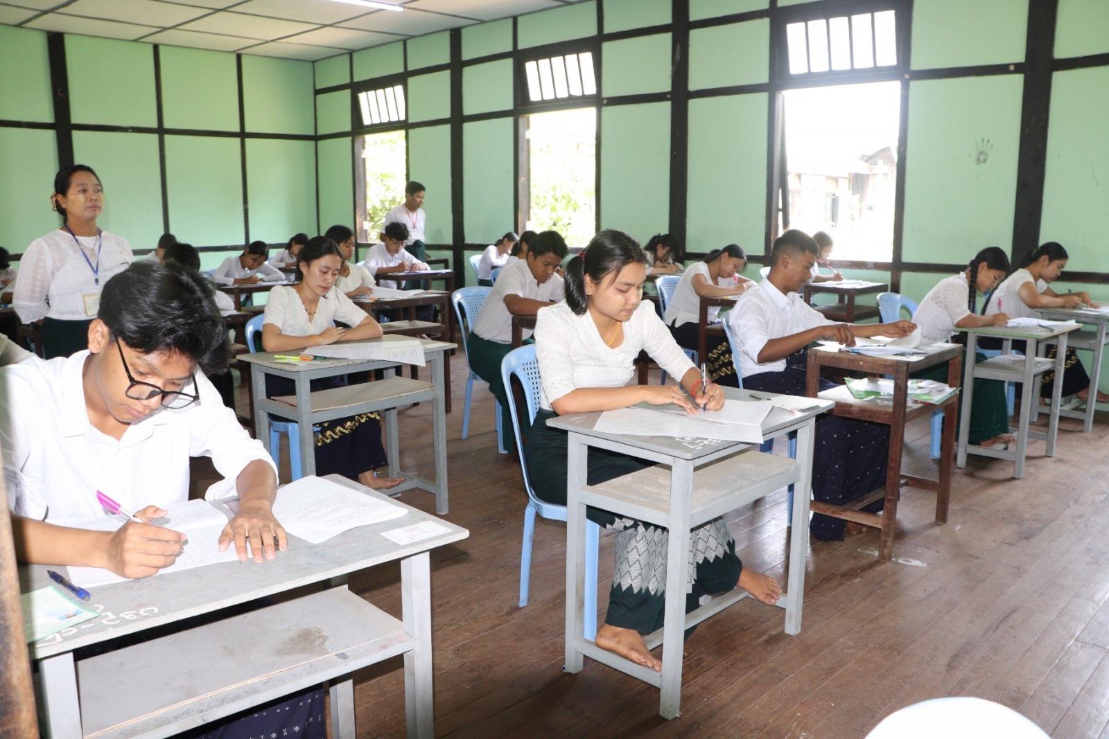 ထို့နောက်တိုင်းဒေသကြီးဝန်ကြီးချုပ်နှင့်အဖွဲ့သည် အမှတ်(၁)အခြေခံပညာအထက်တန်းကျောင်းစာစစ်ဌာန၌ ကျောင်းသား၊ ကျောင်းသူ (၂၃၁) ဦးနှင့် အမှတ်(၂)အခြေခံပညာအထက်တန်းစာစစ်ဌာန၌ ကျောင်းသား၊ ကျောင်းသူ (၃၅၆) ဦးတို့မှ တက္ကသိုလ်ဝင်တန်းစာမေးပွဲ ဖြေဆိုနေမှုအား လှည့်လည်ကြည့်ရှုအားပေးခဲ့ပြီး မေးခွန်းနှင့်အဖြေလွှာလုံခြုံရေး အထူးဂရုစိုက်ရန် တာဝန်ရှိသူများအား လမ်းညွှန်မှာကြားခဲ့ပြီး ကြီးကြပ်ရေးမှူးဆရာ/ဆရာမများအတွက် ချီးမြှင့်ငွေများ ပေးအပ်ခဲ့ကြောင်း သတင်းရရှိသည်။