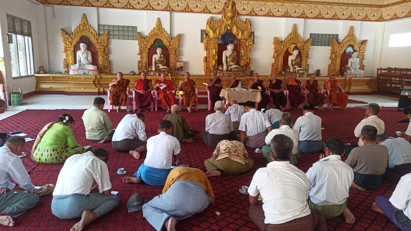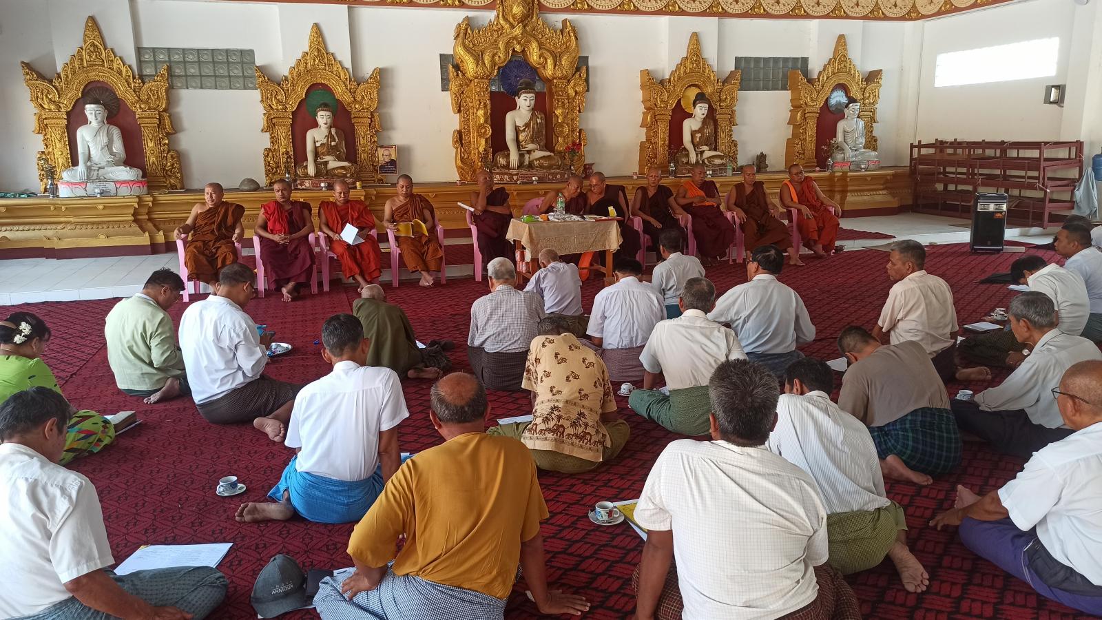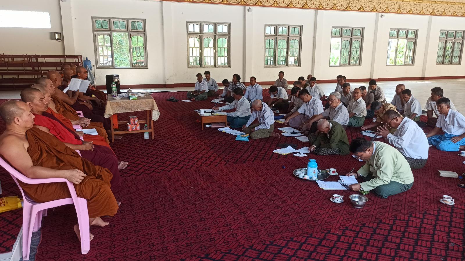 အစည်းအဝေးကို နမောတဿသုံးကြိမ်ရွတ်ဆို ဖွင့်လှစ်၍ ဒါယိကာ၊ ဒါယိကာမအပေါင်း သူတော်ကောင်းတ်ို့က မြို့နယ်သံဃနာယကဥက္ကဋ္ဌ ဆရာတော် ဦးသြသဓထံမှ ငါးပါးသီလခံယူဆောက်တည်ခဲ့ကြပြီး၊ မြို့နယ်သံဃာ့နာယကဥက္ကဋ္ဌ ဆရာတော် ဦးသြသဓက သြဝါဒကထာမြွတ်ကြားချီးမြှင့်၍၊ မြို့နယ်သံဃာ့နာယကအဖွဲ့တွဲဖက်အတွင်းရေးမှူး ဆရာတော်က စာဖြေကိစ္စရပ်များအား ရှင်းလင်းကာ၊ မြို့နယ်စီမံအုပ်ချုပ်ရေးအဖွဲ့ဥက္ကဋ္ဌ ဦးယဉ်ထွေး၊ မြို့နယ်သာသနာရေးမှူး ဦးစောငြိမ်းသောင်းနှင့် မြို့နယ်ဥပထမ္ဘကအဖွဲ့ဥက္ကဋ္ဌ ဦးတင်ထွန်းတို့က သာသနာရေးဆိုင်ရာကိစ္စရပ်များအား လျှောက်ထားပန်ကြားခဲ့ပြီး အစည်းအဝေးသို့ တက်ရောက်လာသူများက ဗုဒ္ဓသာသနံစိရံတိဌတု သုံးကြိမ်ရွတ်ဆို၍ အခမ်းအနားကို ရုတ်သိမ်းခဲ့ကြောင်း သိရသည်။