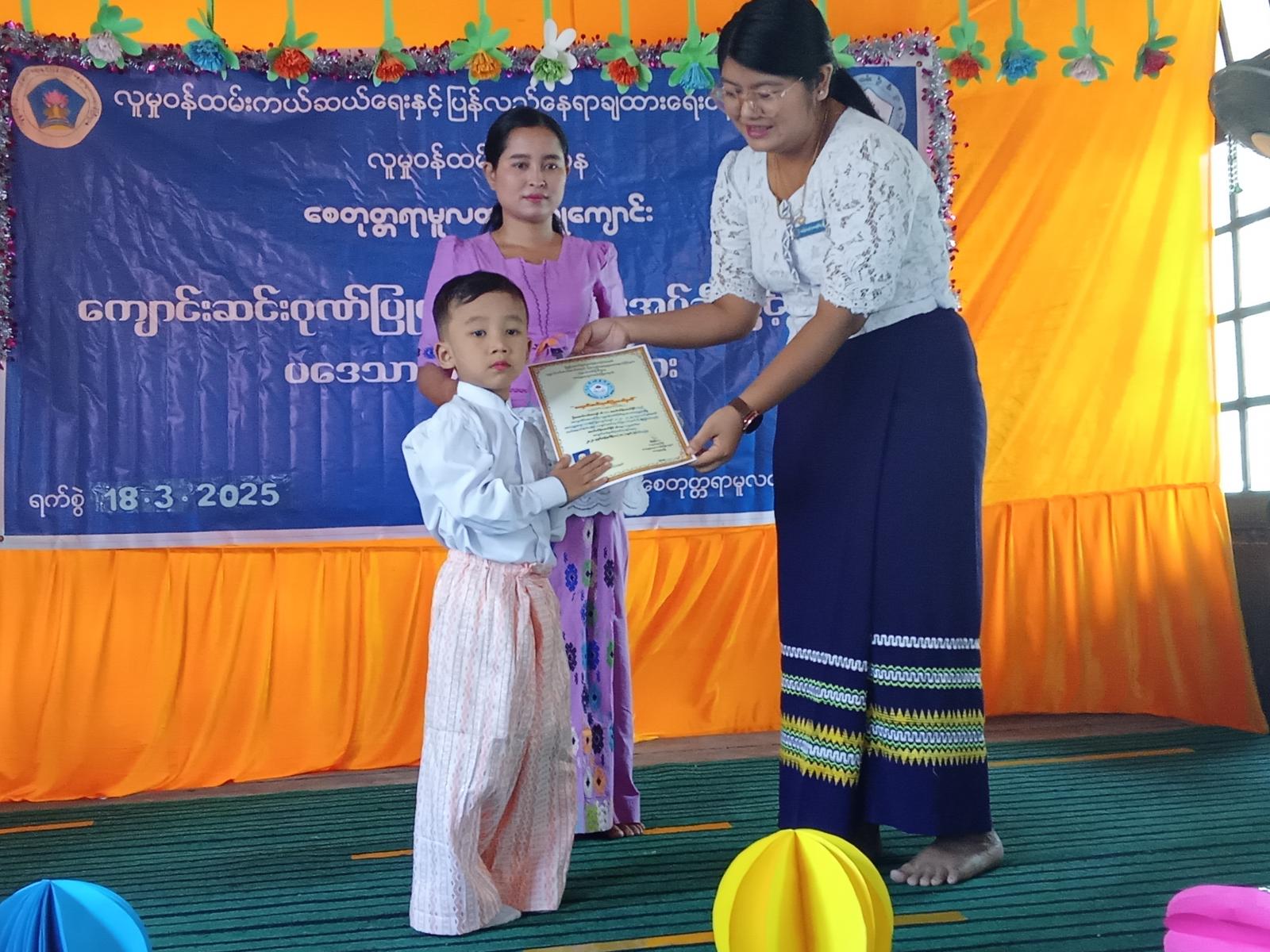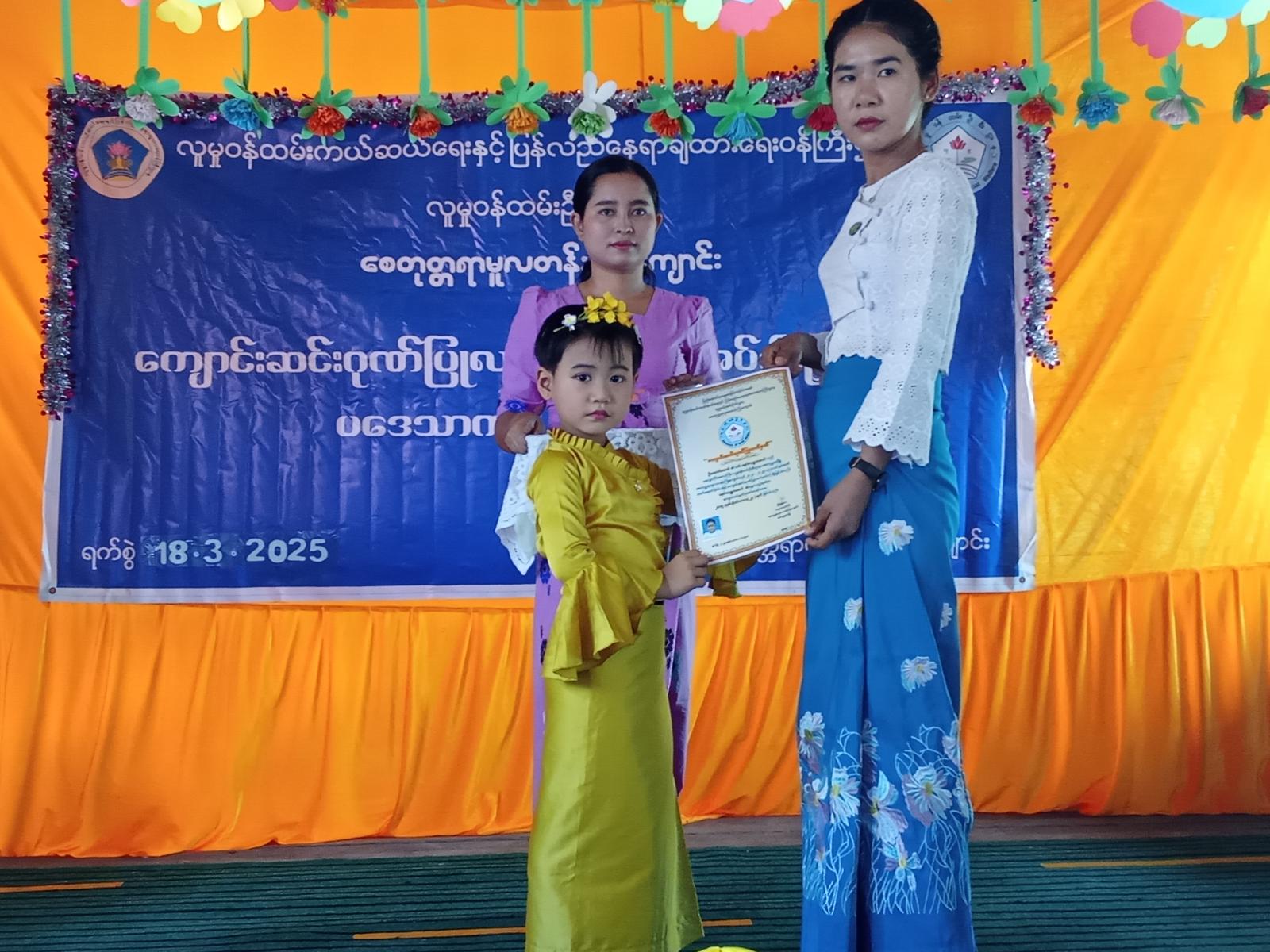 မကွေးတိုင်းဒေသကြီး၊ မင်းဘူးခရိုင်၊ စေတုတ္တရာမြို့ မူလတန်းကြိုကျောင်းတွင် ၂၀၂၄-၂၀၂၅ ခုနှစ် ပညာသင်နှစ် ကျောင်းသား/သူများ၏ ကျောင်းဆင်းဂုဏ်ပြုလက်မှတ်ပေးအပ်ပွဲနှင့် ပဒေသာကပွဲအခမ်းအနားကို ယနေ့ နံနက်ပိုင်းက ကျင်းပပြုလုပ်ခဲ့သည်။