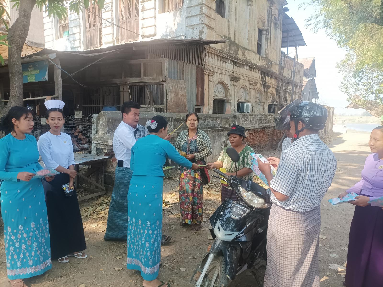 မကွေးတိုင်းဒေသကြီး၊ အောင်လံခရိုင်၊ ဆင်ပေါင်ဝဲမြို့နယ်တွင် အပူဒဏ်အန္တရာယ်တားဆီးကာကွယ်ရေးနှိုးဆော်ချက် မြေစိုက်နံရံကပ်ဘုတ်စိုက်ထူခြင်းနှင့် လက်ကမ်းစာစောင်များဖြန့်ဝေခြင်းကို ယနေ့နံနက် ၉ နာရီအချိန်က ဆင်ပေါင်ဝဲမြို့ ပြည်သူ့ဆေးရုံအပြင်နှင့် မြို့မစျေးအတွင်း၊ အပြင်တို့၌ ပြုလုပ်ခဲ့ရာ မြို့နယ်စီမံအုပ်ချုပ်ရေးအဖွဲ့ဝင်များ၊ ပြည်သူ့ဆေးရုံမှ ဝန်ထမ်းများ၊ ဌာနဆိုင်ရာအသီးသီးမှ တာဝန်ရှိသူများ၊ မြို့နယ်အမျိုးသမီးရေးရာအဖွဲ့ဝင်များနှင့် မိခင်နှင့်ကလေးစောင့်ရှောက်ရေးအဖွဲ့ဝင်များ ပူးပေါင်းအဖွဲ့က ဒေသခံပြည်သူများ လက်ဝယ်အရောက် ဖြန့်ဝေခဲ့သည်။