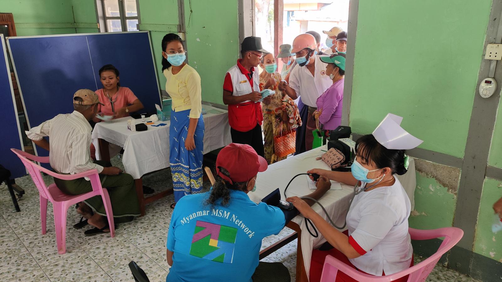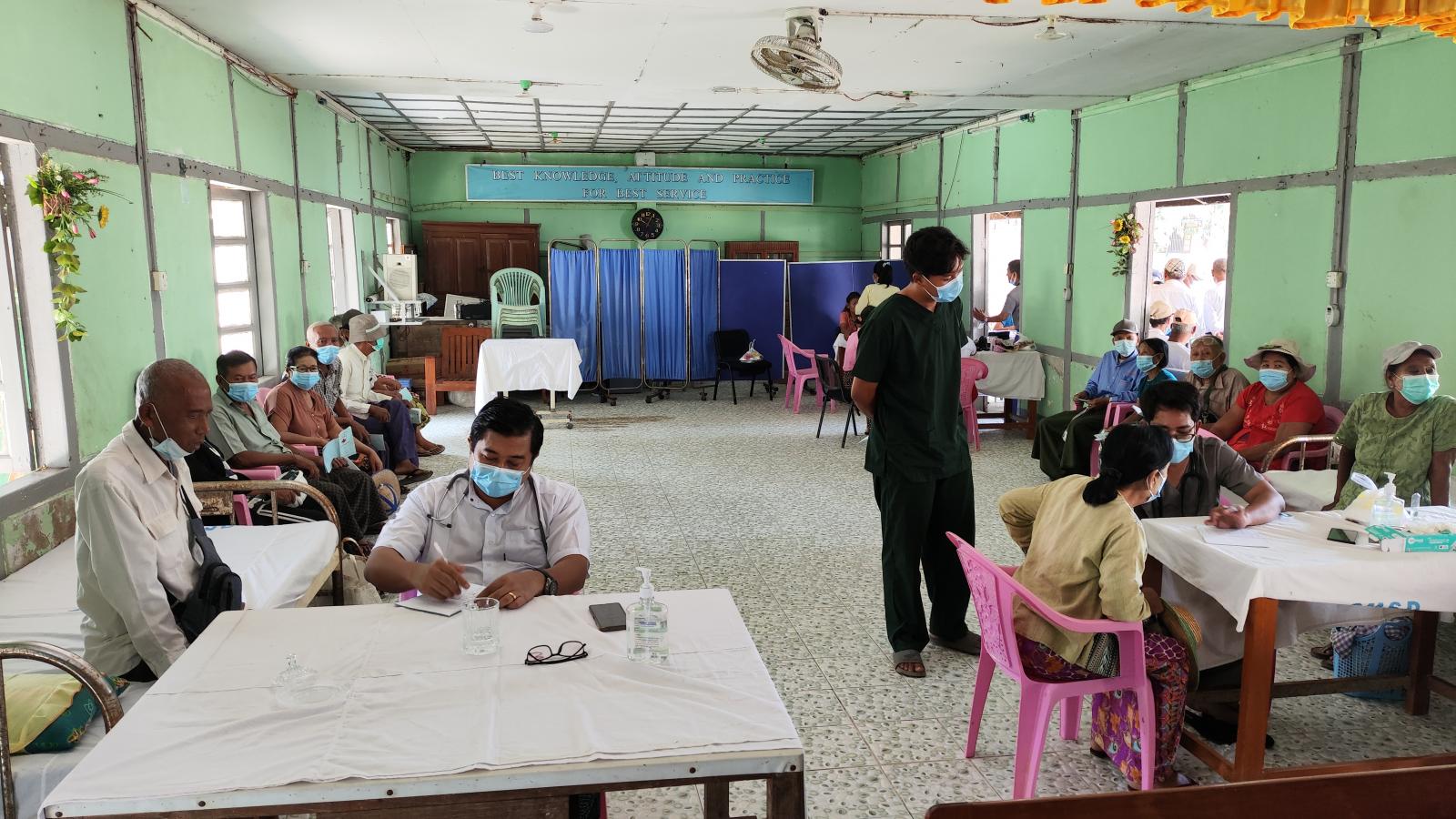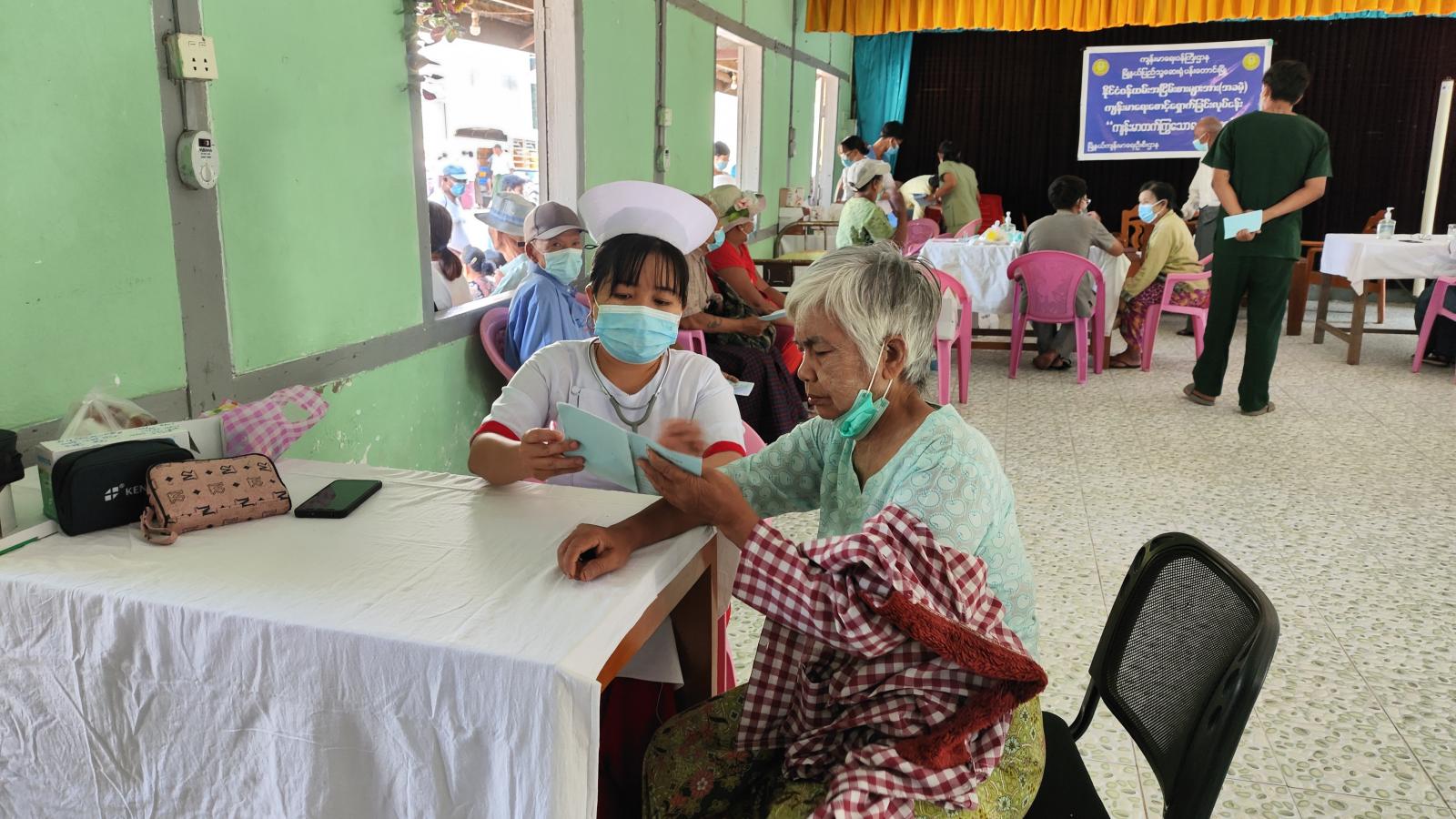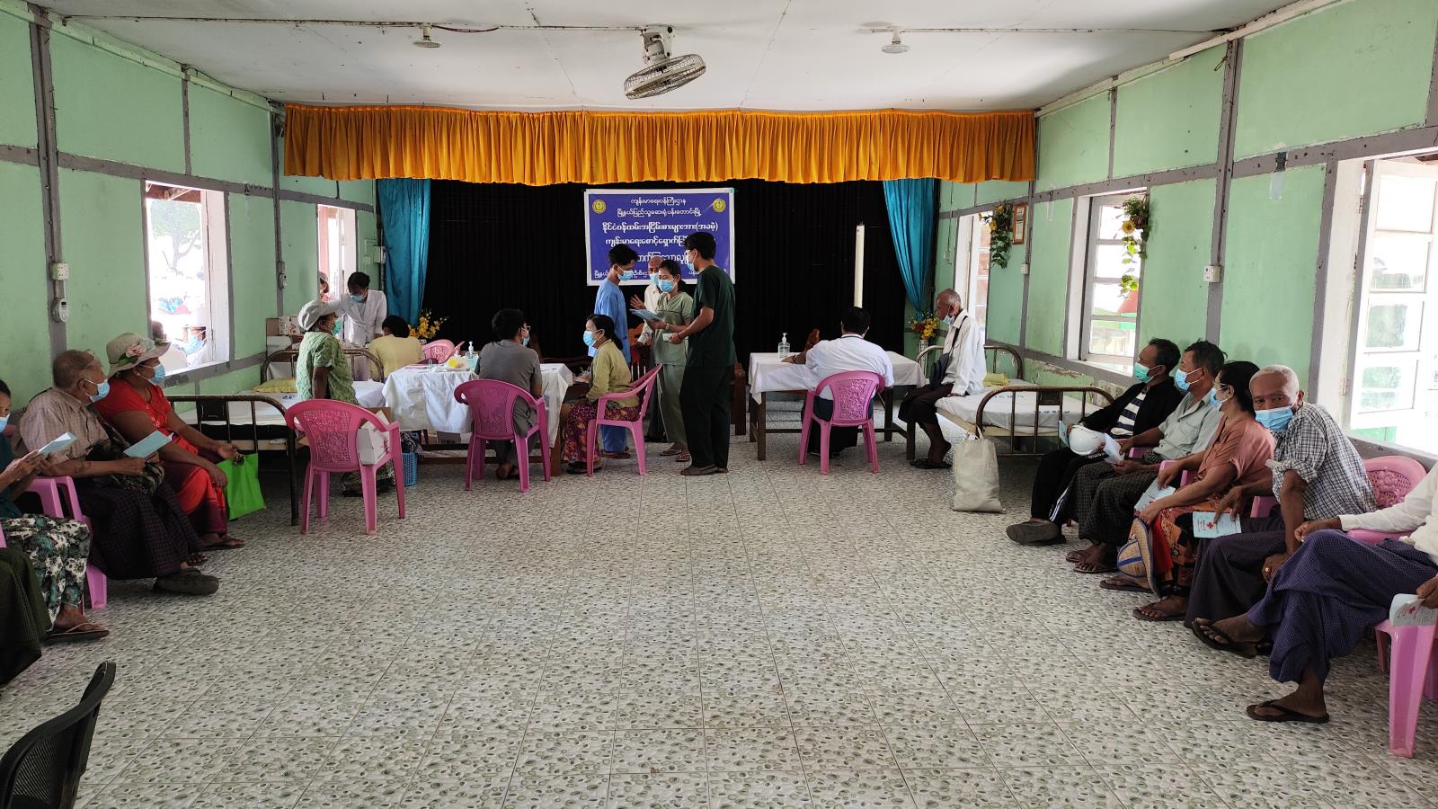 ထိုသို့ ဆေးကုသပေးရာတွင် မြို့နယ်ပြည်သူ့ကျန်းမာရေးဦးစီးဌာနမှူး ဒေါက်တာသန်းထိုက်စိုး ဦးဆောင်၍ ဆရာ၊ ဆရာမများက အငြိမ်းစားဝန်ထမ်းများကို အပူချိန်များတိုင်းတာ၍ လည်းကောင်း၊ ဆီးချို၊ သွေးချို၊ နှလုံးရောဂါ၊ လေးဘက်နာရောဂါ၊ အစာအိမ်ရောဂါ၊ သွေးတိုးရောဂါအစရှိသော ရောဂါများကို အခမဲ့စမ်းသပ်စစ်ဆေးကုသပေးခြင်းနှင့် ဆေးဝါးများ အခမဲ့ပေးလျက်ကြောင်း သိရသည်။