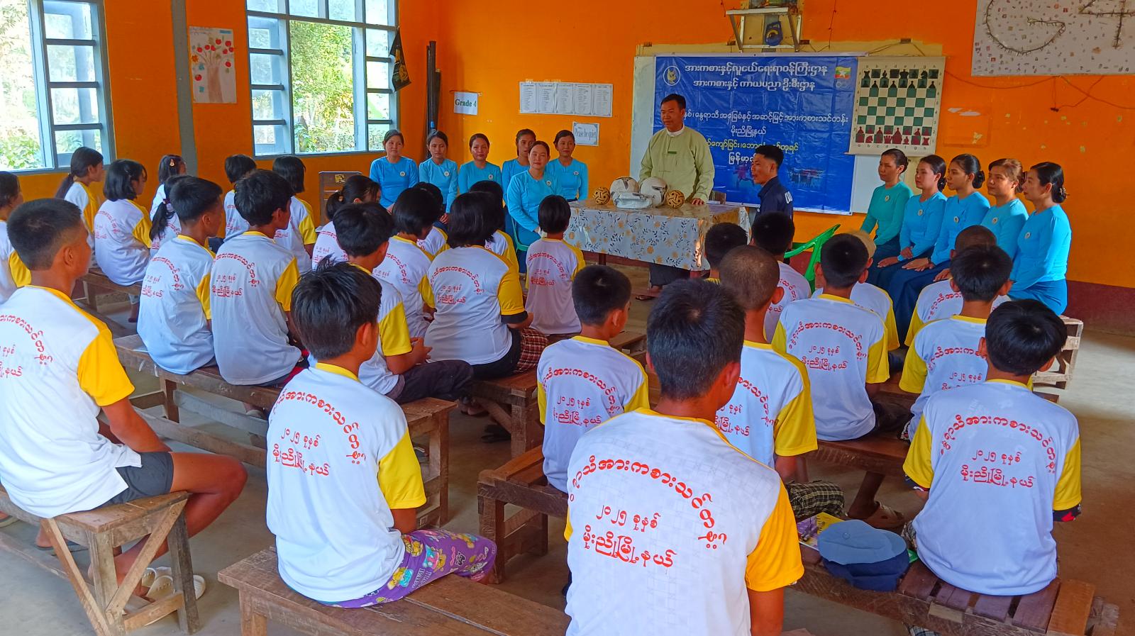 ထို့နောက် မြို့နယ်စီမံအုပ်ချုပ်ရေးအဖွဲ့ဥက္ကဋ္ဌနှင့်အမျိုးသမီးရေးရာအဖွဲ့တို့က အားကစားသင်ကြားပေးနေမှုအား ကြည့်ရှုအားပေးခဲ့ပြီး သင်တန်းကို မတ်လ ၂၃ ရက်မှ ဧပြီလ ၁ ရက်နေ့ထိဖွင့်လှစ်၍ ဘောလုံး၊ ပိုက်ကျော်ခြင်း၊ စစ်တုရင်နှင့်မြန်မာ့သိုင်း အားကစားနည်းများကို သင်တန်းသား(၁၂၀)ဦးအား သင်ကြားပေးမည်ဖြစ်ကြောင်း သိရသည်။