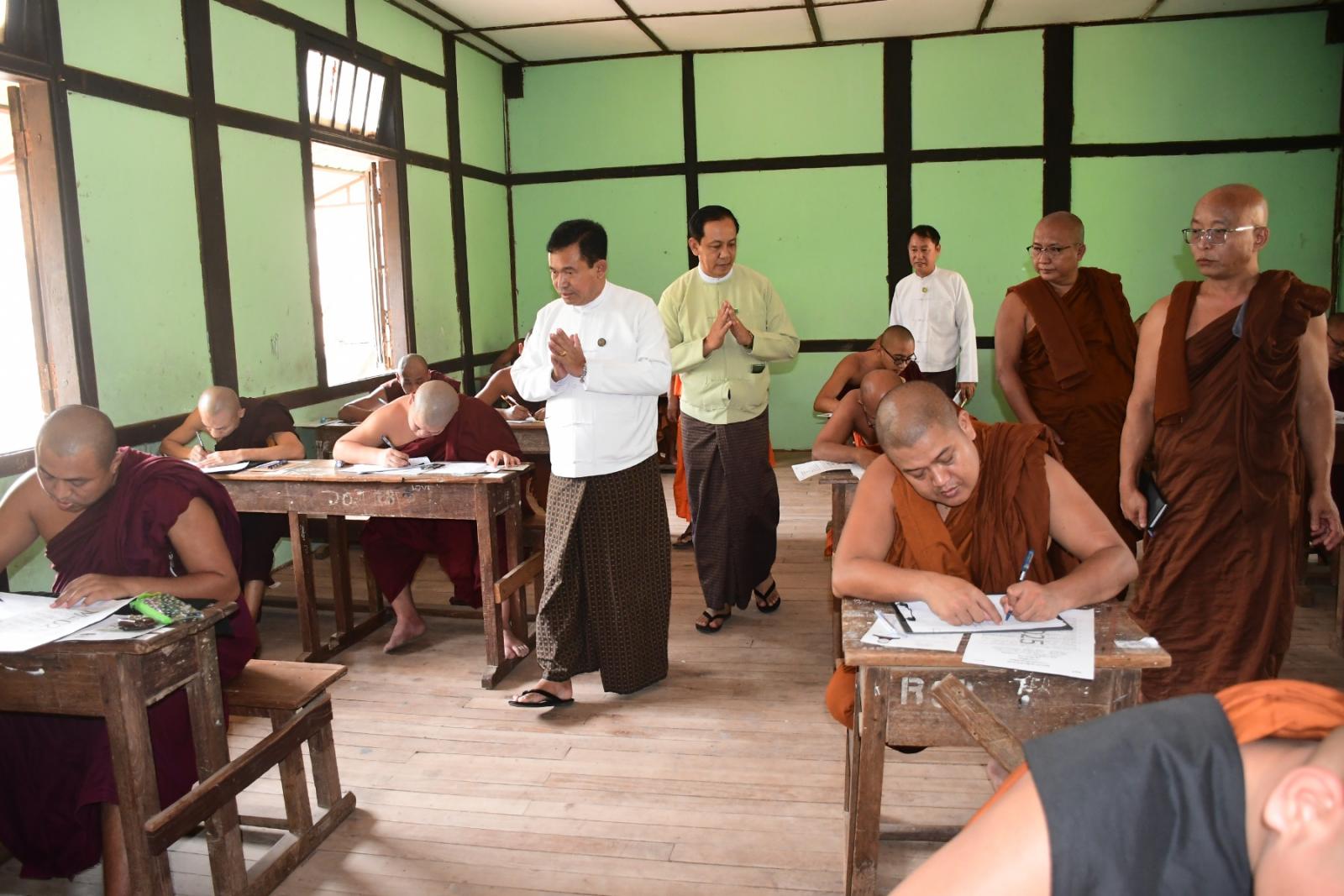 ရှေးဦးစွာ မြို့နယ်သံဃနာယကအဖွဲ့ဥက္ကဋ္ဌ အဂ္ဂမဟာပဏ္ဍိတ အစိုးရဓမ္မာစရိယစာမေးပွဲ အထူးကြီးကြပ် ဆရာတော်ဘဒ္ဒန္တကေသရထံသို့ လှူဖွယ်ဝတ္ထုများကို အမြဲတန်းအတွင်းဝန်ဦးမြင့်ဦးက ဆက်ကပ်လှူဒါန်းသည်။ ထို့နောက် အဆိုပါစာမေးပွဲတွင် ဝင်ရောက်ဖြေဆိုသည့် သံဃာတော် ၂၁၈ ပါး၊ သီလရှင် ၁၁ ပါး စုစုပေါင်း ၂၂၉ ပါးတို့၏ စာမေးပွဲဖြေဆိုနေမှုအား အမြဲတန်းအတွင်းဝန်ဦးမြင့်ဦး၊ မိတ္ထီလာခရိုင် စီမံအုပ်ချုပ်ရေးအဖွဲ့ဥက္ကဋ္ဌ ဦးအောင်မြင့်ဦးနှင့်အဖွဲ့ဝင်များ၊ မြို့နယ်စီမံအုပ်ချုပ်ရေးအဖွဲ့ဥက္ကဋ္ဌ ဦးဇော်အောင်လေးနှင့်အဖွဲ့ဝင်များ၊ တာဝန်ရှိသူများက ကြည်ညိုအားပေးခဲ့သည်။ အဆိုပါ စာမေးပွဲသို့ ဝင်ရောက်ဖြေဆိုသည့် စာဖြေသံဃာတော်များနှင့် သီလရှင်များအား ခရိုင်မြို့နယ်အဆင့်ဌာနဆိုင်ရာများက အအေးအဖျော်ယမကာများ ဆက်ကပ်လှူဒါန်းခဲ့ကြောင်း သိရသည်။