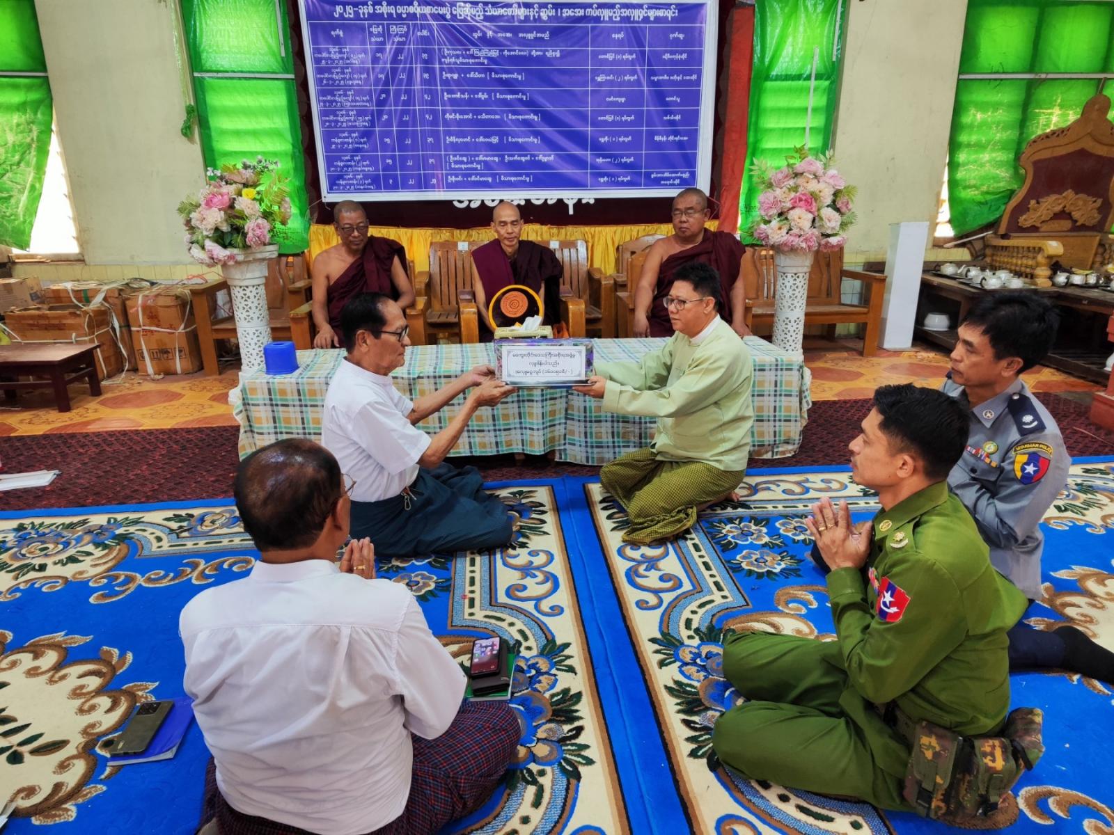 မကွေးတိုင်းဒေသကြီး တောင်တွင်းကြီးမြို့နယ် သာသနာ့ဗိမ္မာန်တော်ကြီးတွင် ၂၀၂၅-ခုနှစ် အစိုးရဓမ္မာစရိယနှင့် ပါဠိပထမပြန်စာမေးပွဲကို ယမန်နေ့က စတင်ကျင်းပလျက်ရှိရာ ဖြေဆိုတော်မူသည့် စာဖြေသံဃာများနှင့် ကြီးကြပ်ရေးဆရာတော်ကြီးများအတွက် အချိုရည်နှင့် ရေသန့်ဗူးများ ဆက်ကပ်လှူဒါန်းရန် မကွေးတိုင်းဒေသကြီးအစိုးရအဖွဲ့မှ ပေးပို့လှူဒါန်းသည့် အလှူငွေ ၁၆၀၅၀၀/-ကျပ်အား ဆက်ကပ်လှူဒါန်းခြင်းကို ယမန်နေ့ နေ့လယ်က သာသနာ့ဗိမာန်တော်ကြီးတွင် ကျင်းပခဲ့ကြောင်း သိရသည်။