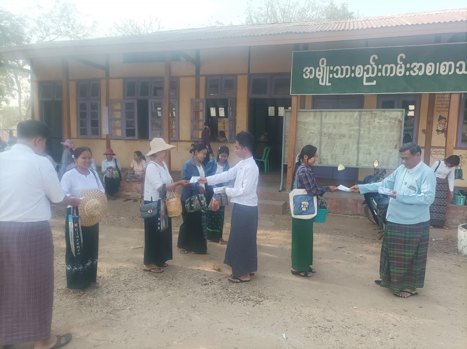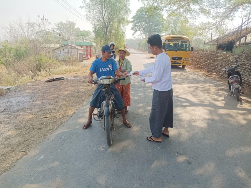 မကွေးတိုင်းဒေသကြီး၊ အောင်လံခရိုင်၊ ဆင်ပေါင်ဝဲမြို့နယ် အခြေခံပညာ အထက်တန်းကျောင်းတွင် ဖွင့်လှစ်လျက်ရှိသည့် အလယ်တန်းနှင့် မူလတန်းဘာသာရပ်စွမ်းရည်မြှင့် သင်တန်းဆွေးနွေးပွဲသို့ တက်ရောက်လျက်ရှိသည့် သင်တန်းသား၊ သင်တန်းသူများနှင့် လမ်းသွားလမ်းလာ ပြည်သူများအား နှစ်(၈၀)ပြည့် တပ်မတော်နေ့အထိမ်းအမှတ် သတင်းစကား လက်ကမ်းစာစောင်များကို ပြန်ကြားရေးနှင့်ပြည်သူ့ဆက်ဆံရေးဦးစီးဌာန ဦးစီးအရာရှိနှင့် ဝန်ထမ်းများက ယနေ့နံနက် ၉ နာရီအချိန်က ဖြန့်ဝေပေးခဲ့ကြောင်း သိရသည်။