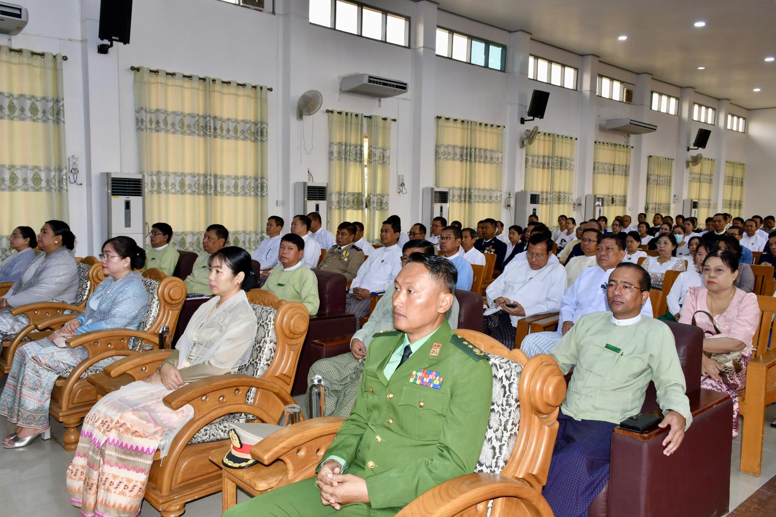ယင်းနောက် တိုင်းဒေသကြီး တရားလွှတ်တော်တရားသူကြီးချုပ်နှင့် အစိုးရအဖွဲ့ တာဝန်ရှိသူများက သက်ဆိုင်ရာကဏ္ဍအလိုက် ထူးချွန်ဆုရရှိသူများအား ဂုဏ်ပြုလက်မှတ် ၊ ဂုဏ်ပြုဆုတံဆိပ်နှင့် ဂုဏ်ပြုဆုငွေများ အသီးသီးပေးအပ်ချီးမြှင့်ခဲ့ကြသည်။ ၎င်းနောက် တိုင်းဒေသကြီး ဝန်ကြီးချုပ်သည် တက်ရောက်လာသည့် ဂုဏ်ပြုခံပုဂ္ဂိုလ်များ ရင်းရင်းနှီးနှီး လိုက်လံနှုတ်ဆက်ခဲ့ပြီး လက်ဖက်ရည်နှင့်မုန့်များဖြင့် တည်ခင်းဧည့်ခံကျွေးမွေးခဲ့ကြောင်း သိရှိရသည်။