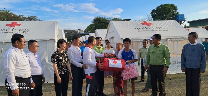 မဟာအောင်မြေမြို့နယ်၊ ဒေးဝန်းအရှေ့ရပ်ကွက်၊ အကွက်(၂၈၃)၊ ၈၆-၈၇ ကြား၊ ၃၈-၃၉ ကြားရှိ မဟာအောင်မြေမြို့နယ်၊ အားကစားကွင်းအတွင်းသို့ ယမန်နေ့ညနေပိုင်းက မန္တလေးတိုင်းဝန်ကြီးချုပ် ဦးမျိုးအောင်၊ တရုတ်ကောင်စစ်ဝန်ချုပ် မစ္စကောင်းဖျင်နှင့်အဖွဲ့၊ လုံခြုံရေးနှင့်နယ်စပ်ရေးရာဝန်ကြီး ဗိုလ်မှူးကြီး နေလင်းစိုး၊ လူမှုရေးရာဝန်ကြီး ဦးအောင်ကျော်မိုး၊ တိုင်းဒေသကြီးဥပဒေချုပ် ဦးမြင့်အောင်၊ တိုင်းဒေသကြီးစီမံအုပ်ချုပ်ရေးမှူး ဦးဝေဇင်ထွန်း၊ မန္တလေးမြိုတော်ဝန် ဦးကျော်ဆန်း၊ မန္တလေးတိုင်းဒေသကြီးရဲတပ်ဖွဲ့မှူး ရဲမှူးချုပ် ဝင်းဗိုလ်၊ မဟာအောင်မြေခရိုင်ရဲတပ်ဖွဲ့မှူး ဒုရဲမှူးကြီး ဝဏ္ဏအောင်၊ မဟာအောင်မြေခရိုင် စီမံအုပ်ချုပ်ရေးမှူး ဦးတင်ဝင်းရွှေ၊ မြို့နယ်စီမံအုပ်ချုပ်ရေးမှူး ဦးမောင်မောင်၊ တိုင်းဒေသကြီး ကြက်ခြေနီသူနာပြုအဖွဲ့ဦးစီးမှူး (ဒုတိယတန်း) ဦးအောင်ဇော်ဝင်းတို့ရောက်ရှိလာပြီး အားကစားကွင်းအတွင်း ယာယီ(ရွက်ဖြင်)တဲများတွင် နေထိုင်သော မိသားစုဝင် အိမ်ထောင်စု (၇၈)စု၊ အမျိုးသား (၁၄၁)၊ အမျိုးသမီး (၁၇၈)ဦး၊ ပေါင်း (၃၁၉)ဦးတို့အားတွေ့ဆုံ၍ အားပေးစကားများပြောကြားခြင်း၊ တရုတ်နိုင်ငံနှင့် တိုင်းဒေသကြီး ကြက်ခြေနီအဖွဲ့တို့မှလှူဒါန်းသည့် MAMEE ခေါက်ဆွဲခြောက်ဖာ (တစ်ဖာ၂၄ ထုပ်)ပါ ၈၀ ဖါ၊ ရေသန့်ကဒ် (၆)လုံးပါ ၈၀ ကဒ်၊ တစ်ကိုယ်ရေသုံးပစ္စည်း (အစုံ)ပါ ၈၀ ဖါ၊ ဆန် (၁၂)ပြည်ပါ ၄၀ အိတ်၊ စားဆီ (၅၀)သားဗူး ၈၀ ဗူးတို့အား ပေးအပ်လှူဒါန်းခဲ့သည်။