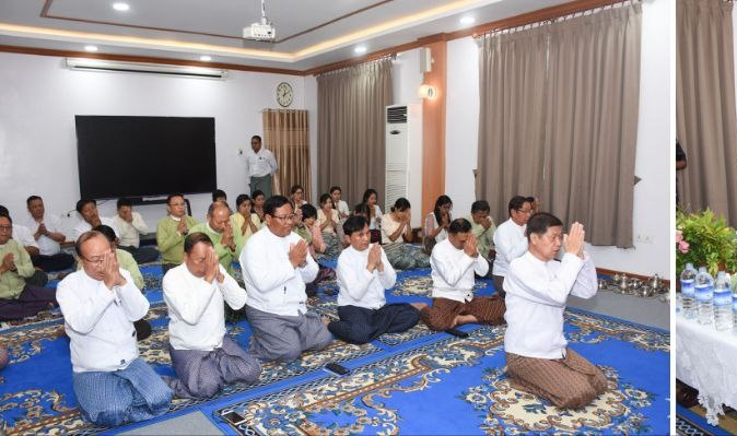 ၎င်းနောက် ဆရာတော်များမှ စိန်ရောင်ခြည်ဘုရားပင့်ဂါထာရွတ်ဖတ်၍ ဘုရားပင့်ခြင်း၊ သီလခံယူဆောက်တည်ခြင်း၊ ဆရာတော်၊ သံဃာတော်များအား နဝကမ္မဝတ္ထုငွေများ ဆက်ကပ်လှူဒါန်းခြင်း၊ နှစ်သစ်ကူးအန္တရာယ်ကင်း ပရိတ်ရွတ်ဖတ်ပူဇော်ပွဲသို့ ပရိတ်တရားတော်များ နာယူရန်အတွက် နတ်ဗြဟ္မာများအား ပင့်ဖိတ်ခြင်း၊ ပဋ္ဌာန်းဒေသနာတော်ကြီး စတင်ရွတ်ဖတ်ရန် တိုက်တွန်းနှိုးဆော်လွှာ ပဋ္ဌာန်းအမွှန်းအား ရွတ်ဖတ်ပူဇော်ခြင်း၊ ဆရာတော်၊ သံဃာတော်တို့က ပဋ္ဌာန်းပစ္စယယုဒ္ဒေသပါဠိတော်အား စုပေါင်းရွတ်ဖတ်၍ အလှည့်ကျပဋ္ဌာန်းအာဏက သံဃာတော်မှ ပဋ္ဌာန်းဒေသနာတော်ကြီးအား စတင်ရွတ်ဖတ်ပူဇော်ခြင်းများကို အစီအစဉ်အတိုင်းဆောင်ရွက်ခဲ့ပြီး ဆရာတော်၊ သံဃာတော်များအား နေ့ဆွမ်းများ ဆက်ကပ်လှူဒါန်းခဲ့ကြောင်းနှင့် အဆိုပါအသံမစဲရွတ်ဖတ်ပူဇော်ခြင်းများကို ဧပြီ ၂၇ ရက်နေ့အထိ ကျင်းပသွားမည်ဖြစ်ပြီး အသံမစဲမဟာပဋ္ဌာန်းတော်မြတ်ရွတ်ဖတ်ပူဇော်ပွဲ (၅) ရက်၊ ပရိတ်ကြီး (၁၁) သုတ် ရွတ်ဖတ်ပူဇော်ပွဲ (၂) ရက်၊ မဟာသမယသုတ် (၂) ရက်၊ ဥပ္ပါတသန္တိကျမ်းမြတ် ရွတ်ဖတ်ပူဇော်ပွဲ (၂) ရက် စုစုပေါင်း (၁၁) ရက်တိုင်တိုင် ရွတ်ဖက်သွားမည်ဖြစ်ကြောင်း သတင်းရရှိသည်။