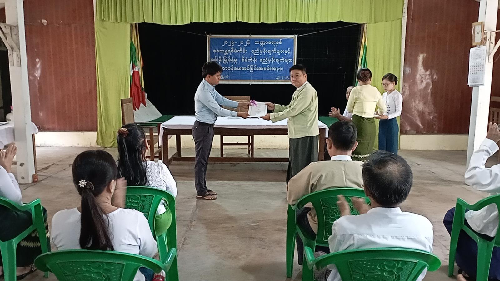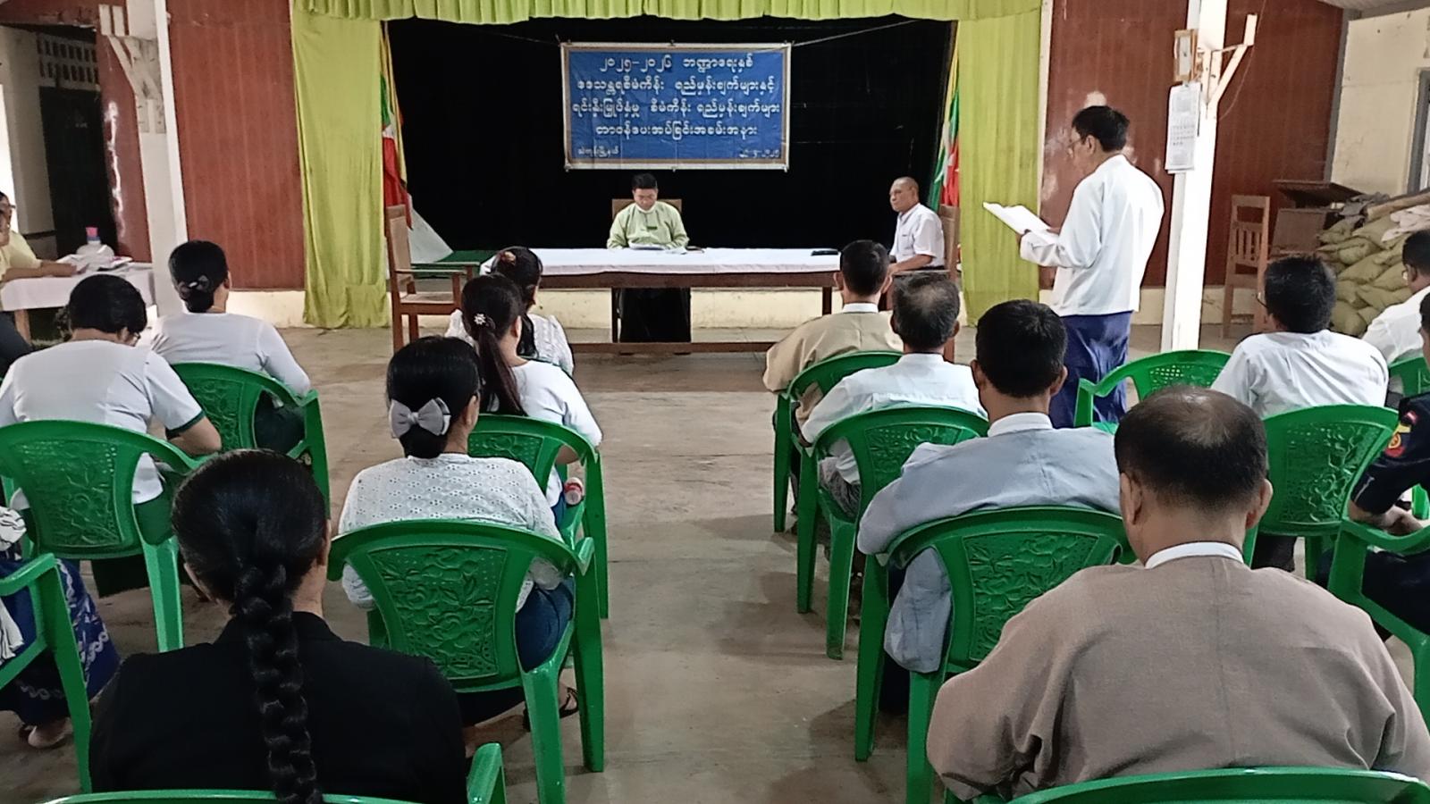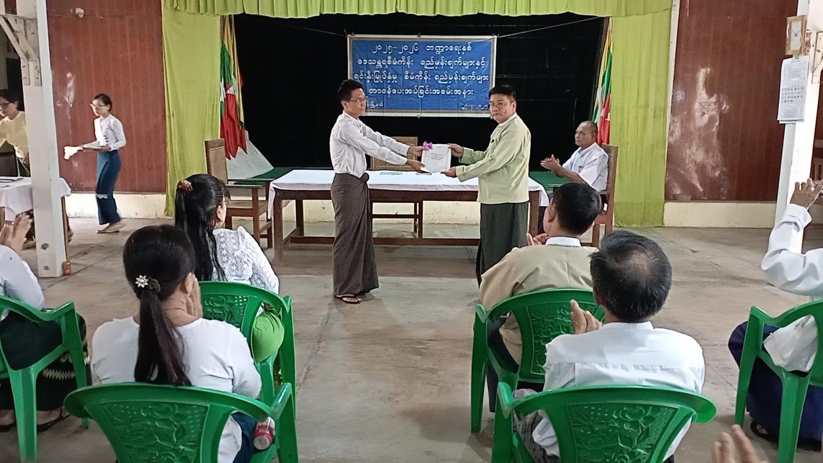 ထို့နောက် စီမံကိန်းရေးဆွဲအကောင်ထည်ဖော်ရေးကော်မတီဥက္ကဋ္ဌ၊ မြို့နယ်စီမံအုပ်ချုပ်ရေးအဖွဲ့ဥက္ကဋ္ဌ ဦးယဥ်ထွေးမှ (၂၀၂၅- ၂၀၂၆) ဘဏ္ဍာနှစ် ဒေသန္တရစီမံကိန်းရည်မှန်းချက်များနှင့် ရင်းနှီးမြှပ်နှံမှုစီမံကိန်းများဖြစ်သည့် လယ်ယာကဏ္ဍ၊ စက်မှုကဏ္ဍနှင့် ဝန်ဆောင်မှုကဏ္ဍများအား သက်ဆိုင်ရာဌာနများသို့ တာဝန်ပေးအပ်ခဲ့ရာ သက်ဆိုင်ရာဌာနများမှ တာဝန်ရှိသူများက လက်ခံရယူခဲ့ကြသည်။
