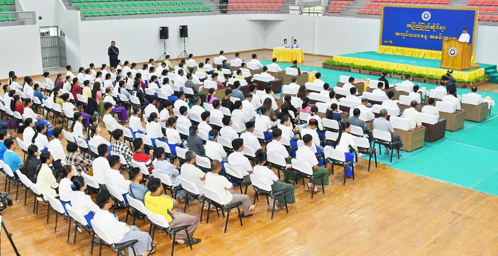 အခမ်းအနားသို့ မန္တလေးတိုင်းဒေသကြီးအစိုးရအဖွဲ့ဝန်ကြီးချုပ် ဦးမျိုးအောင်၊ တိုင်းဒေသကြီးတရားလွှတ်တော် တရားသူကြီးချုပ် ဒေါ်ခင်သင်းဝေနှင့်အစိုးရအဖွဲ့ဝင်ဝန်ကြီးများ၊ အလုပ်သမားဝန်ကြီးဌာန၊ အလုပ်သမားညွှန်ကြားရေးဦးစီးဌာန ညွှန်ကြားရေးမှူးချုပ် ဦးတင်ကိုကို၊ အလုပ်သမားဝန်ကြီးဌာန လက်အောက်ရှိ ဌာနအသီးသီးမှ တာဝန်ရှိသူများ၊ တိုင်း/ ခရိုင်အဆင့် ဌာနဆိုင်ရာများ၊ ခရိုင်/ မြို့နယ်စီမံအုပ်ချုပ်ရေးအဖွဲ့ ဥက္ကဋ္ဌများ၊ မန္တလေးကုန်သည်များနှင့် စက်မှုလက်မှုလုပ်ငန်းရှင်များအသင်း၊ မန္တလေးစက်မှုဇုန် စီမံခန့်ခွဲရေးကော်မတီစသည့် စီးပွားရေးဆိုင်ရာအသင်းအဖွဲ့များမှ တာဝန်ရှိသူများ၊ မြို့နယ်အသီးသီးမှ မြို့နယ်ညှိနှိုင်းဖြန်ဖြေရေးအဖွဲ့များမှ အလုပ်ရှင်၊ အလုပ်သမားကိုယ်စားလှယ်များ၊ စုစုပေါင်း ၁၈၀ ဦးခန့် တက်ရောက်ကြသည်။