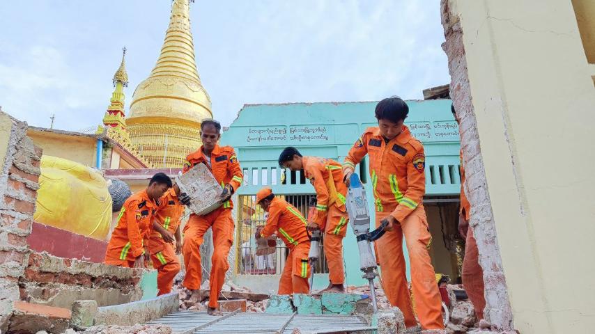 ထို့သို့ဆောင်ရွက်ရာတွင် မြို့နယ်မီးသတ်ဦးစီးဌာနမှ မြို့နယ်ဦးစီးမှူး ဦးအောင်မင်းကျော်နှင့်တပ်ဖွဲ့ဝင်များ၊ သန္ဓေတပ်ဖွဲ့ဝင်များနှင့် ဘုရားအကျိုးတော်ဆောင်ဂေါပကဥက္ကဋ္ဌ ဦးကံညွှန့်နှင့်အဖွဲ့ဝင်များက ဘုရားစောင်းတန်းများ ပြိုကျပျက်စီးခဲ့သည့်အတွက် ရှင်းလင်းရေးလုပ်ငန်းများ ဆောင်ရွက်ပေးခြင်း၊ ဘုရားရင်ပြင်တော်အပေါ်ရှိပြိုကျသွားသည့် ရှေးဟောင်မှန်စီထားသော အုတ်ကျိုးများကို ရှင်းလင်းခြင်းနှင့်ပြုပြင်ခြင်းလုပ်ငန်းများကို နေ့စဥ်အဆက်မပြတ် ဆက်လက်ဆောင်ရွက်ပေးလျက်ရှိကြောင်း သိရသည်။