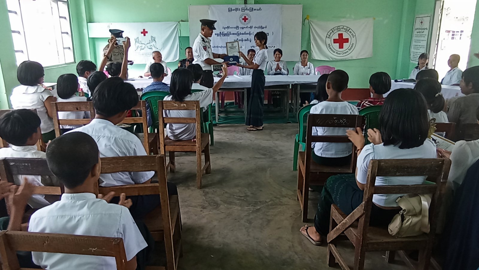 ရှေးဦးစွာ မြို့နယ်စီမံအုပ်ချုပ်ရေးအဖွဲ့ဝင် လူဝင်မှုကြီးကြပ်ရေးနှင့်ပြည်သူ့အင်အားဝန်ကြီးဌာန၊ မြို့နယ်ဦးစီးမှူး ဦးစောငြိမ်းသောင်း၊ မြို့နယ်ပညာရေးမှူး ဆရာမကြီး ဒေါ်မသန်းစိန်၊ မြို့နယ်ပြန်ကြားရေးနှင့် ပြည်သူ့ဆက်ဆံရေးဦးစီးဌာန ဦးစီးအရာရှိ ဒေါ်ဝင့်နန္ဒာဌေးနှင့် မြို့နယ်ကြက်ခြေနီအသင်း(ခွဲ)ဥက္ကဋ္ဌ ဦးတင်ဦးတို့က သင်တန်းဆင်း အမှာစကားများ ပြောကြားခဲ့သည်။ ဆက်လက်၍ တာဝန်ရှိသူများက သင်တန်းသား/သင်တန်းသူများအား သင်တန်းထူးချွန်ဆုနှင့် သင်တန်းဆင်းလက်မှတ်များပေးအပ်ခဲ့ကြသည်။