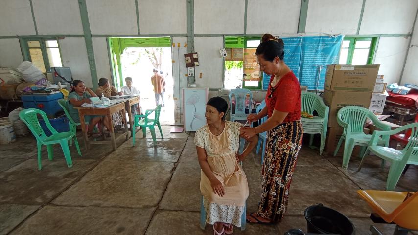 မြို့နယ်မိခင်နှင့်ကလေးကျန်းမာရေးဌာနမှ ကျန်းမာရေး ဆရာမများနှင့် သားဖွားဆရာမတို့က ကိုယ်ဝန်ဆောင်မိခင်များ နှင့်မွေးကင်းစမှ (၁)နှစ်ခွဲအောက်ကလေးငယ်များအား လစဉ် သတ်မှတ် ရက်များတွင် ကာကွယ်ဆေးများကိုဆက်လက်ထိုးနှံ တိုက်ကျွေးပေးသွားမည်ဖြစ်ကြောင်း မြို့နယ်မိခင်နှင့်ကလေး ကျန်းမာရေးဌာနမှ သိရသည်။