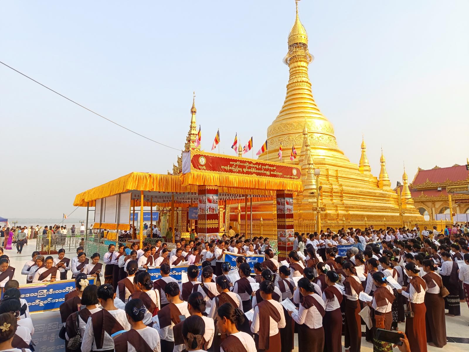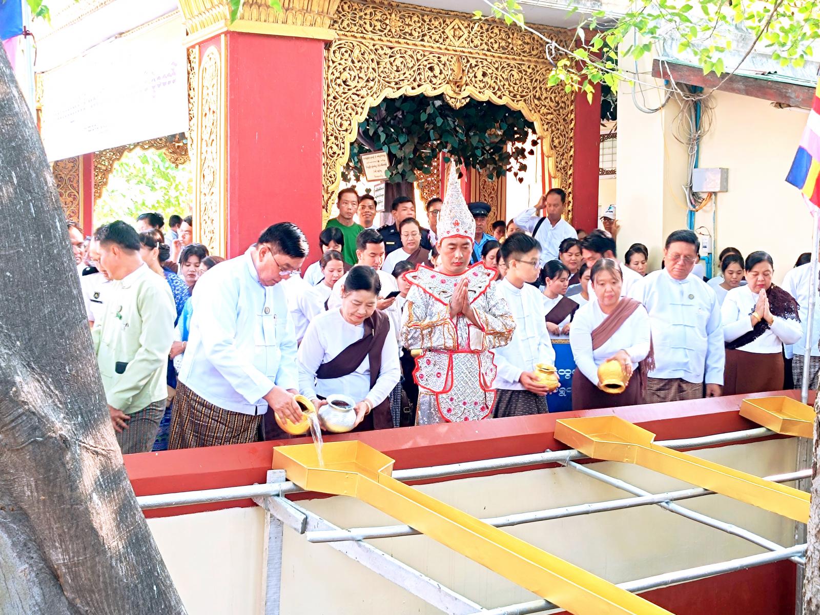 ထို့နောက် ညောင်ရေသွန်းလောင်းသည့်အဖွဲ့များ၊ ဝတ်ရွတ်အသင်းအဖွဲ့များ၊ ဘုရားဖူးလာပြည်သူများက ဗုဒ္ဓသာသနံစိရံတိဋ္ဌတု သုံးကြိမ်ရွတ်ဆို ဆုတောင်း၍ အခမ်းအနားကို ရုတ်သိမ်းခဲ့ကြပြီး မကွေးခရိုင်အုပ်ချုပ်ရေးမှူး ဦးမောင်ထူးနှင့် ဇနီးတို့က မြန်မာမုန့်ဟင်းခါး စတုဒိသာ ကုသိုလ်ဒါနပြု လှူဒါန်းခဲ့ကြောင်း သိရှိရသည်။
