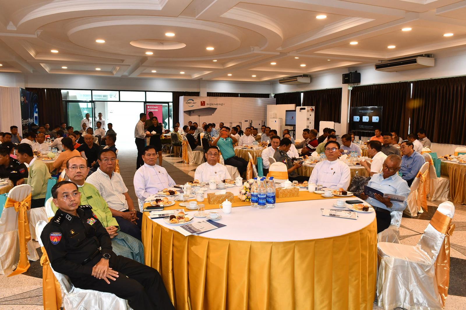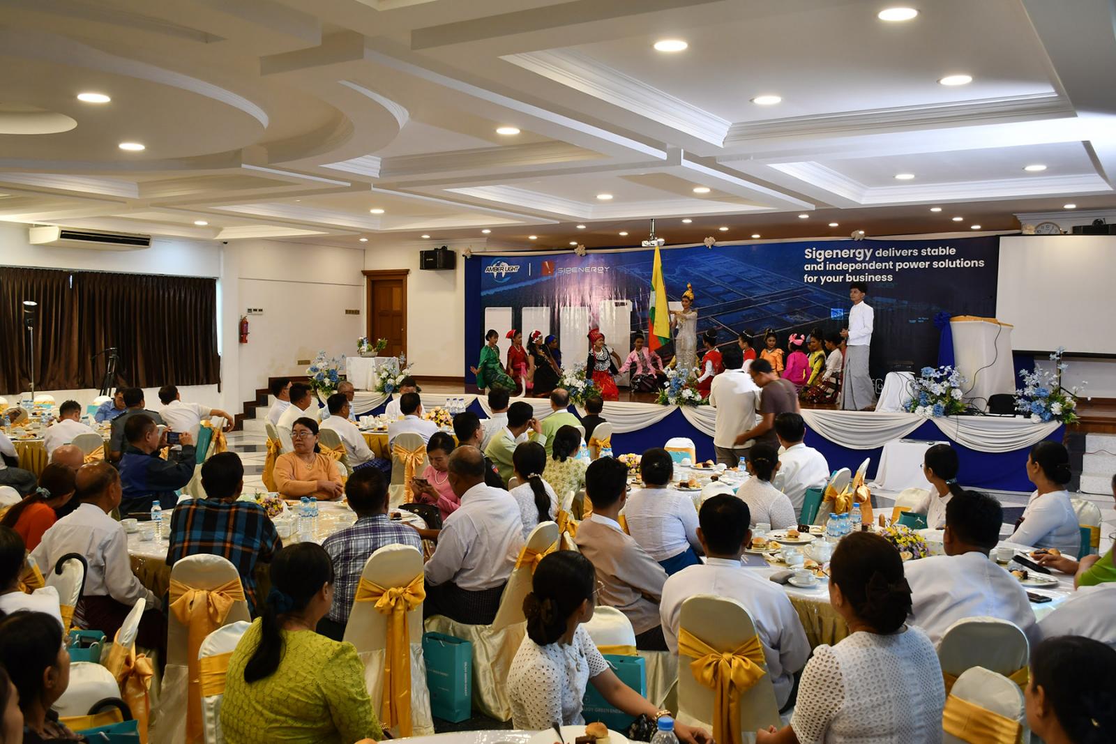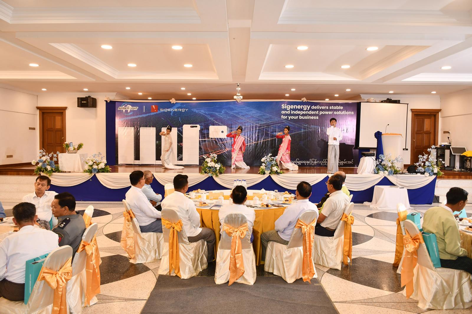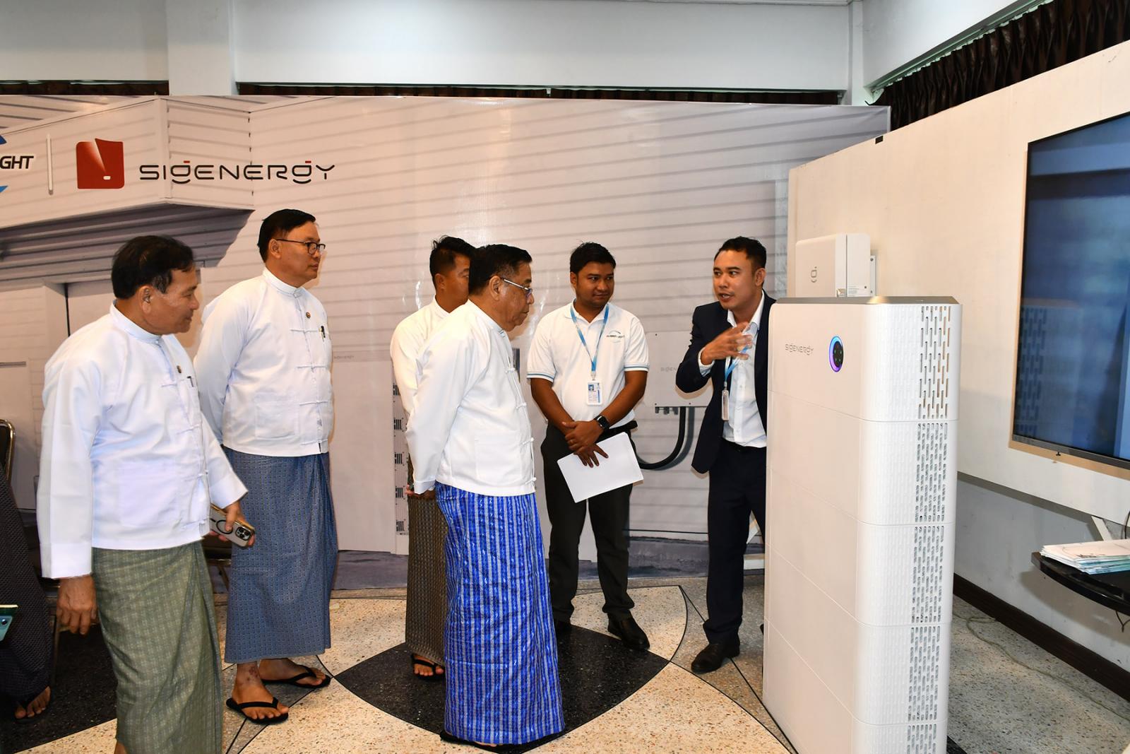 ပြန်လည်ပြည့်ဖြိုးမြဲစွမ်းအင်ကုန်ပစ္စည်းများ မိတ်ဆက်ပွဲတွင် AMBER LIGHT ကုမ္ပဏီလီမိတက်မှ တာဝန်ရှိသူများက Sigenergy Home Solution နှင့်ပတ်သက်သည့် အကြောင်းအရာများ၊ Company လက်ရှိ လုပ်ဆောင်နေသောလုပ်ငန်းများ၊ HYB ကုန်ပစ္စည်းများအကြောင်း ရှင်းလင်းတင်ပြကြပြီး Sigenergy ထုတ်ကုန်များနှင့်ပတ်သက်သည့် Video Clip ပြသရာ တိုင်းဒေသကြီးဝန်ကြီးချုပ်နှင့် တက်ရောက်လာကြသူများမှ ကြည့်ရှုအားပေးခဲ့ကြသည်။
