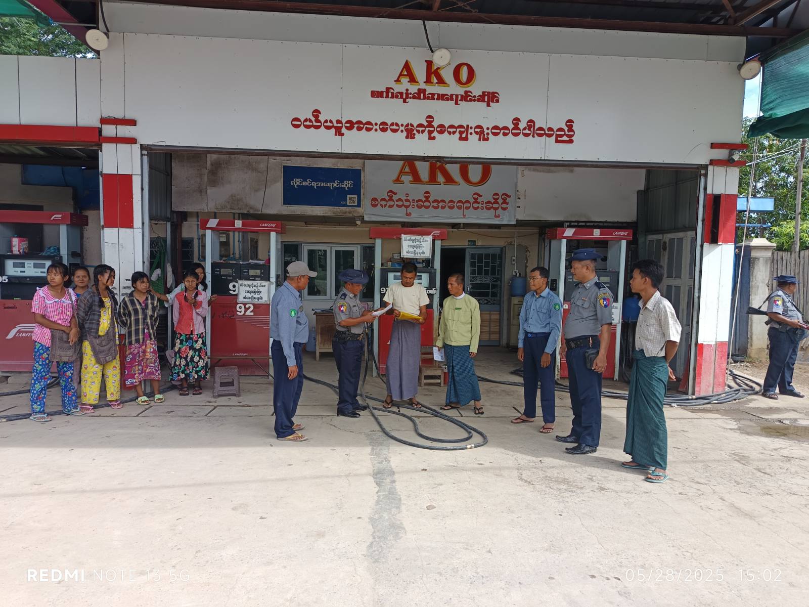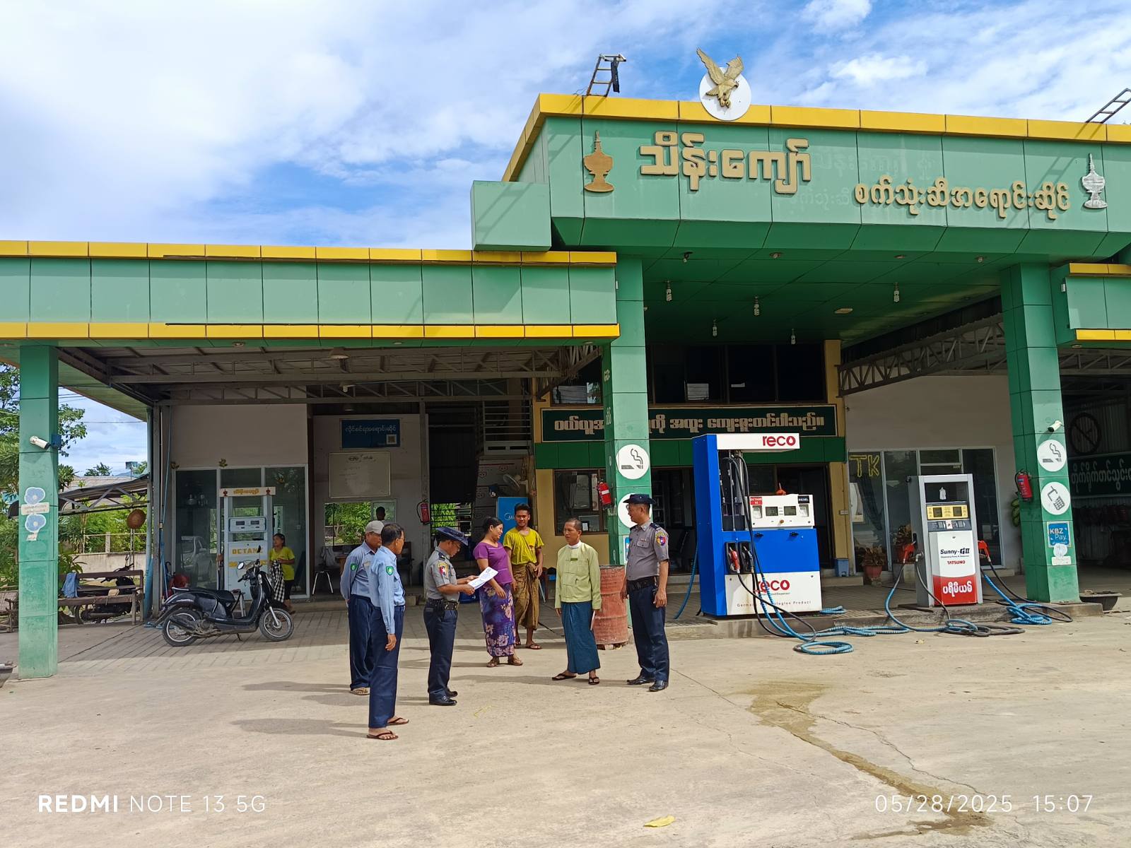 ထို့သိုကွင်းဆင်းဆောင်ရွက်ရာတွင် မြို့နယ်ရဲတပ်ဖွဲ့မှူးရဲမှူးဌေးဝင်း၊ ကူမဲမြို့ အထွေထွေအုပ်ချုပ်ရေးဦးစီးဌာနမှ မြို့အုပ်ချုပ်ရေးမှူးဦးနိုင်ဇော်နှင့် မီးသတ်ဦးစီးဌာနမှ ကူမဲမြို့တာဝန်ခံနှင့် မြို့နယ်စည်ပင်သာယာရေးအဖွဲ့မှတာဝန်ရှိသူများဦးဆောင်၍ မြစ်သားမြို့နယ်နှင့် ကူမဲမြို့အတွင်း ဖွင့်လှစ်ရောင်းချလျက်ရှိသော လိုင်စင်ရစက်သုံးဆီအရောင်းဆိုင်များအား ရည်ညွှန်းသတ်မှတ်စျေးအတိုင်းရောင်းချခြင်း ရှိ/မရှိ၊ သတ်မှတ်ခွင့်ပြုထားသည့်လိုင်စင်များ ပြည့်စုံမှုရှိ/မရှိ၊ အရောင် မှိန်နေသည့်ဆိုင်းဘုတ်များ သင့်လျော်သည့်ဆေး အရောင်နှင့်ပြင်ဆင်ထားရှိစေရေးနှင့် ငလျင်ဒဏ်ကြောင့်စက်သုံးဆီအရောင်းဆိုင် အဆောက်အဦများထိခိုက်မှု ရှိ/မရှိ လိုက်လံစစ်ဆေးဆောင်ရွက်ပြီး လိုအပ်သည်များကို လမ်းညွှန်မှာကြားခဲ့ကြောင်းသိရသည်။