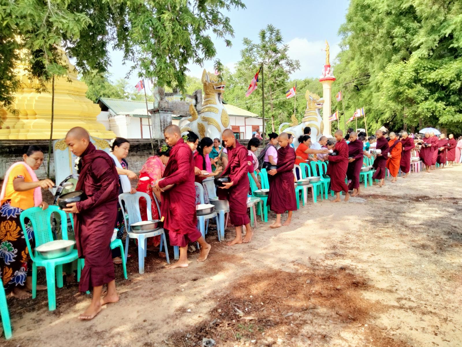 အဆိုပါ ဆွမ်းဆန်စိမ်းလောင်းလှူပွဲတွင် ကန်ကြီးရပ်ကွက်ရှိ သံဃာ့နာယကအဖွဲ့မှ ဦးဆောင်၍ မြို့ပေါ်ရှိ ဘုန်းတော်ကြီးကျောင်းများမှ သံဃာတော်များ ပင့်ဖိတ်ပြီး ဆရာတော်ကြီးများနှင့် သံဃာတော်အပါး(၁၅၀)ပါးအား မြို့ပေါ်ရှိရပ်ကွက် နေပြည်သူများက ဆန်၊ ကြက်သွန်၊ အချိုရည်၊ ဆေးပစ္စည်းများနှင့် လှူဖွယ်ဝတ္ထုပစ္စည်းအမျိုးမျိုးတို့ကို လောင်းလှူခဲ့ကြကြောင်း သိရသည်။