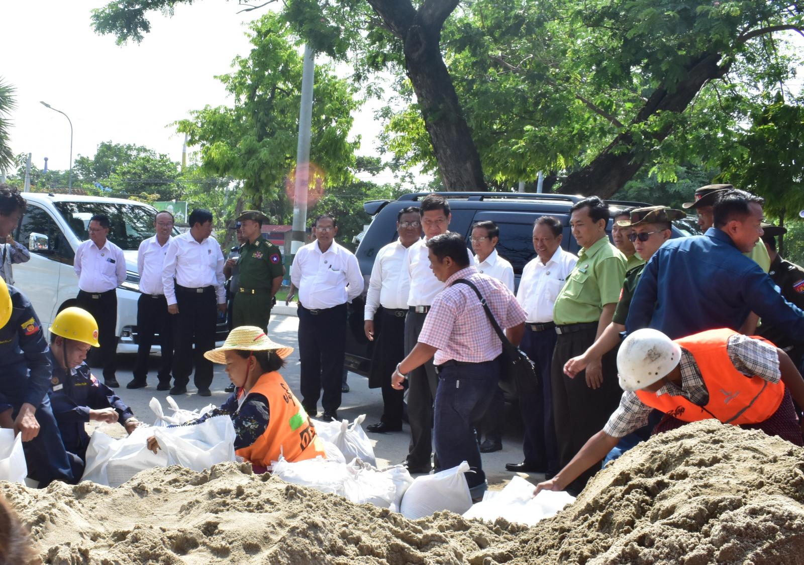 ရေဘေးကြိုတင်ကာကွယ်ရေးလုပ်ငန်းများဆောင်ရွက်ထားရှိမှု အခြေနေအား မန္တလေးတိုင်းဒေသကြီးအစိုးရအဖွဲ့၊ ဝန်ကြီးချုပ်ဦးမျိုးအောင်၊ ဥပဒေချုပ်ဦးမြင့်အောင်၊ လုံခြုံရေးနှင့်နယ်စပ်ရေးရာဝန်ကြီး ဗိုလ်မှူးကြီးနေလင်းစိုး၊ စည်ပင်သာယာရေးဝန်ကြီးဦးကျော်ဆန်း၊ စီးပွားရေးရာဝန်ကြီးဦးသိန်းဌေး၊ သယံဇာတရေးရာဝန်ကြီးဦးရွှေဇင်၊ လူမှုရေးဝန်ကြီးဦးအောင်ကျော်မိုး၊ လမ်းပန်းဆက်သွယ်ရေးဝန်ကြီး ဦးအောင်ဇော်ဦး၊ မန္တလေးတိုင်းဒေသကြီးအစိုးရအဖွဲ့ အတွင်းရေးမှူးဦးဝေဇင်ထွန်း၊ မန္တလေးတိုင်းဒေသကြီး ရဲတပ်ဖွဲ့မှူးရဲမှူးချုပ်ဝင်းဗိုလ်၊ တိုင်းဒေသကြီးမီးသတ်ဦးစီးဌာန ညွှန်ကြားရေးမှူးဦးဇော်ဝင်းထွန်းနှင့် မဟာအောင်မြေခရိုင် စီမံအုပ်ချုပ်ရေးအဖွဲ့ဥက္ကဋ္ဌ ဦးတင်ဝင်းရွှေနှင့် တာဝန်ရှိသူများမှ ရေဘေးကြိုတင်ကာကွယ်ရေးလုပ်ငန်းများ ဆောင်ရွက်နေမှုအခြေနေအား လိုက်လံကြည့်ရူစစ်ဆေးခဲ့သည်။