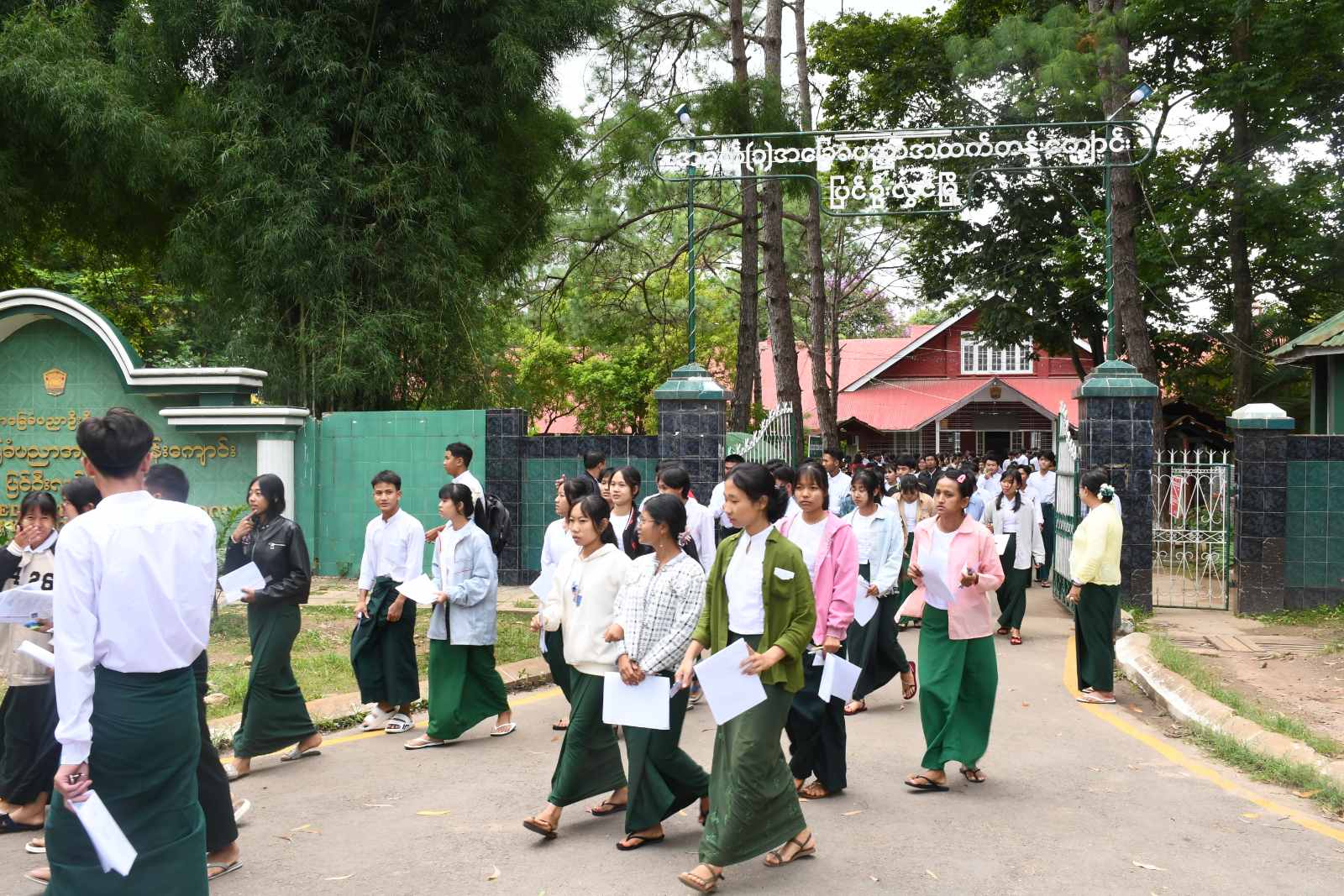 မန္တလေးတိုင်းဒေသကြီး၊ ပြင်ဦးလွင်ခရိုင်၊ ပြင်ဦးလွင်မြို့နယ်၌ ၂၀၂၅ ခုနှစ် တက္ကသိုလ်ဝင်စာမေးပွဲအား စာစစ်ဌာန(၅)ခု ဖွင့်လှစ်၍ ယနေ့နံနက် (၉)နာရီတွင် မြန်မာစာဘာသာအား ကျောင်းသား၊ကျောင်းသူများ အေးချမ်းစွာ ဝင်ရောက်ဖြေဆိုလျက်ရှိရာ ခရိုင်စီမံအုပ်ချုပ်ရေးအဖွဲ့ဥက္ကဋ္ဌနှင့် အဖွဲ့ဝင်များ၊ ခရိုင်ပညာရေးမှူး၊ မြို့နယ်စီမံအုပ်ချုပ်ရေးအဖွဲ့ဥက္ကဋ္ဌနှင့် အဖွဲ့ဝင်တို့မှ သွားရောက်ကြည့်ရှုအားပေးကြသည်။