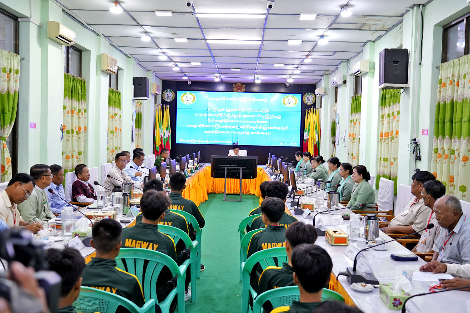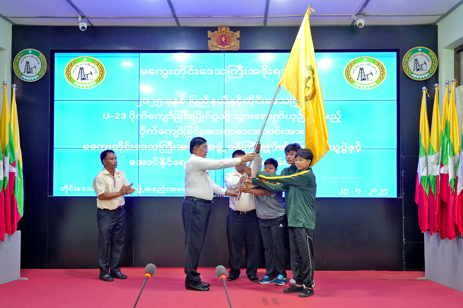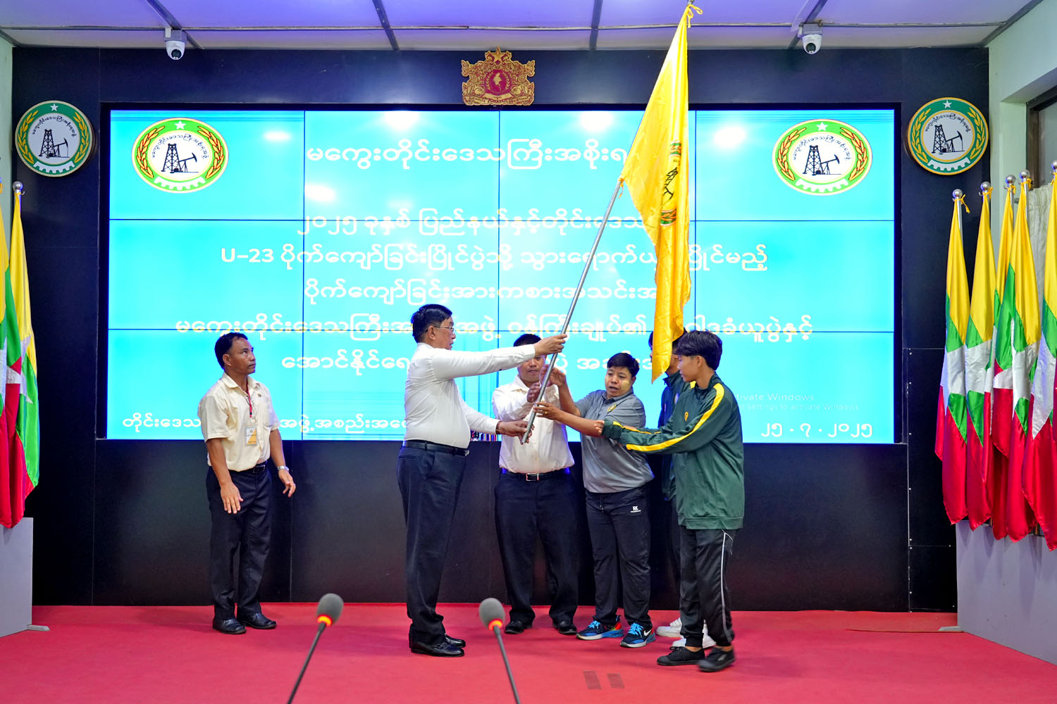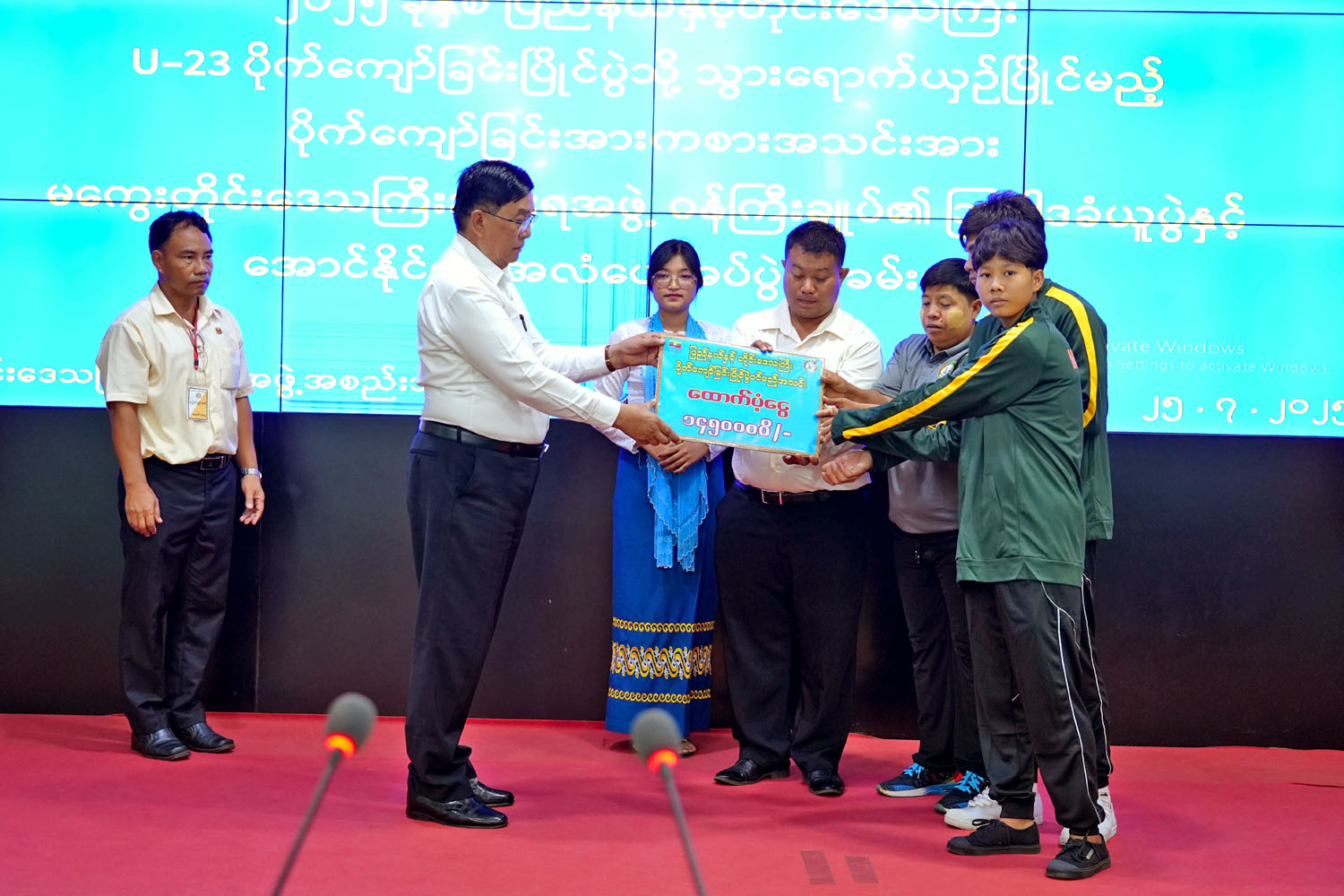 ဆက်လက်၍ ပြည်နယ်နှင့်တိုင်းဒေသကြီး ပိုက်ကျော်ခြင်းပြိုင်ပွဲသို့ ပြိုင်ပွဲဝင်ရောက် ယှဉ်ပြိုင်မည့် အခြေအနေများအား တိုင်းဒေသကြီး အားကစားနှင့် ကာယပညာဦးစီးဌာန ညွှန်ကြားရေးမှူး ဦးသန်းအောင်က ရှင်းလင်းတင်ပြကာ၊ တိုင်းဒေသကြီး ဝန်ကြီးချုပ်က အုပ်ချုပ်သူ၊ နည်းပြနှင့် ကစားသမားများအား အောင်နိုင်ရေးအလံနှင့် ထောက်ပံ့ငွေကျပ် (၁,၄၅၀,၀၀၀/ိ-) (ဆယ်လေးသိန်း ငါးသောင်းကျပ်)အား ပေးအပ်ခဲ့ကြောင်း သိရသည်။