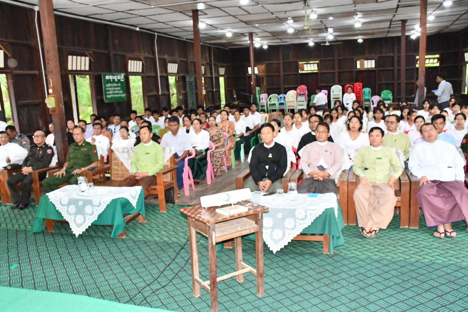 ဆက်လက်၍ သန့်ရှင်း၍ စိမ်းလန်းစိုပြည်သောကျောင်းများ ဝင်ရောက်ယှဥ်ပြိုင်မည့် ကျောင်းများမှ ဆရာ၊ ဆရာမများအား ဆရာများလက်စွဲစာအုပ်ပါခေါင်းစဥ်များဖြင့် ခရိုင်ပတ်ဝန်းကျင် ထိန်းသိမ်းရေးဦးစီးဌာန ဦးစီးအရာရှိ ဒေါ်ဆုမွန်ဦးက “ဇီဝမျိုးစုံမျိုးကွဲများနှင့် စွမ်းအင်” ခေါင်းစဥ်နှစ်ခုဖြင့် ပို့ချဆွေးနွေးခြင်း၊ ဒုတိယဦးစီးမှူး ဦးထွန်းထွန်းနိုင်က “ရေ၊ လေ နှင့် မြေဆီလွှာ” ခေါင်းစဥ်(၃)ခုဖြင့် ပို့ချဆွေးနွေးခြင်း၊ ဒုတိယဦးစီးမှူး ဦးသော်ဇင်ဝင်းက “သစ်တောသစ်ပင်နှင့် လူသားနှင့်ပတ်ဝန်းကျင်” ခေါင်းစဥ်တို့ဖြင့် ပို့ချဆွေးနွေးခဲ့ကြောင်းသိရသည်။