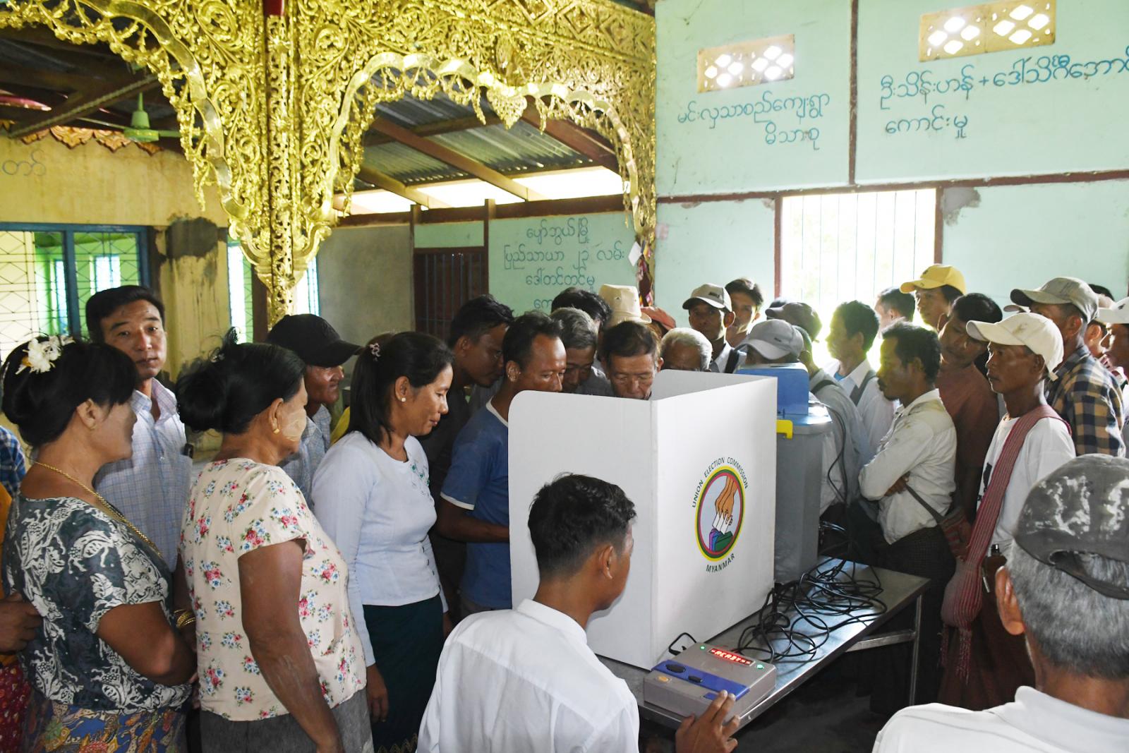 ရှေးဦးစွာ မြို့နယ်ရွေးကောက်ပွဲကော်မရှင်အဖွဲ့ခွဲရုံးမှ မြို့နယ်ရွေးကောက်ပွဲအရာရှိ ဒေါ်ခင်သီတာခိုင်က မြန်မာအီလက်ထရောနစ်မဲပေးစက် (MEVM) အကြောင်းနှင့် မဲပေးပုံအဆင့်ဆင့်တို့ကို ရှင်းလင်းဆွေးနွေးပြီး ရှင်းလင်းပွဲသို့ တက်ရောက်လာသည့် ပြည်သူများက မြန်မာအီလက်ထရောနစ်မဲပေးစက် (MEVM) ဖြင့် လက်တွေ့စမ်းသပ်မဲပေးခြင်းပြုလုပ်ကြပြီး မဲရလာဒ်အား လက်တွေ့သရုပ်ပြထုတ်ပြန်ကြေငြာခြင်းကို ပြသခဲ့ကြောင်း၊ အလားတူ ရှမ်းပွဲရပ်ကွက်ရှိ ရာပြည့်သာသနာ့ဗိမာန်တော်တွင်လည်း ကျင်းပပြုလုပ်ခဲ့ကြောင်း သိရသည်။