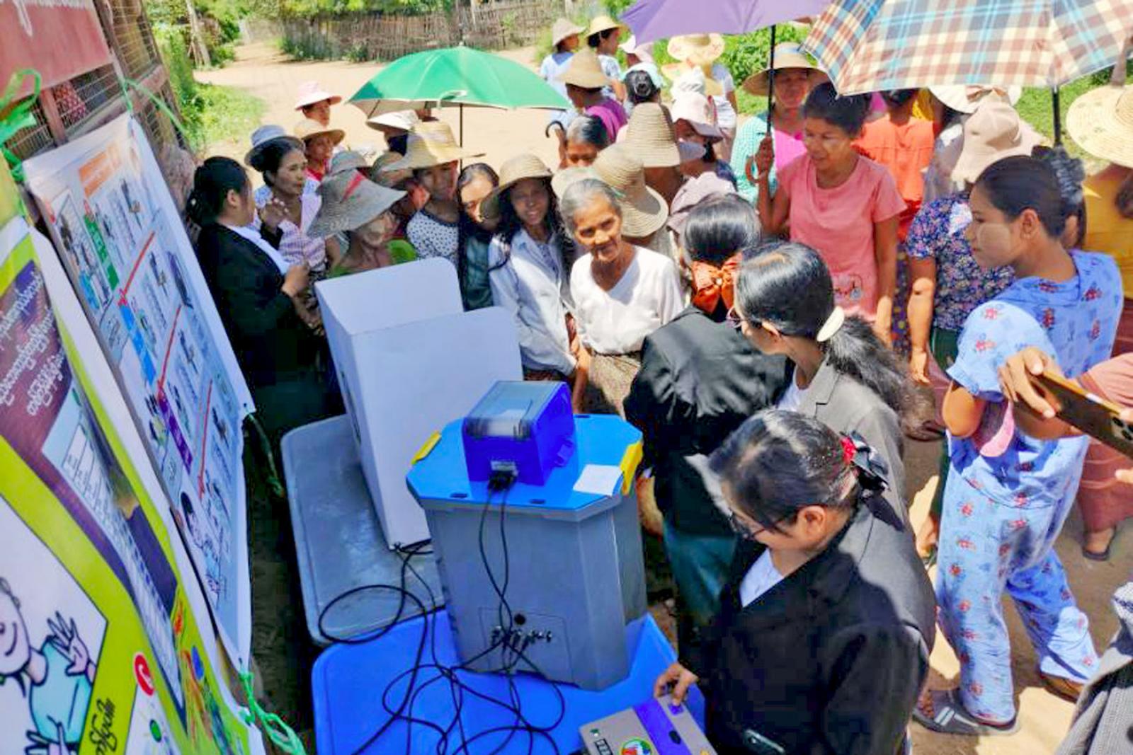 မကွေးတိုင်းဒေသကြီး၊ မင်းဘူးခရိုင်၊ ပွင့်ဖြူမြို့နယ်၌ မဲဆန္ဒရှင်ပြည်သူများ ဆန္ဒမဲပေးရာတွင် လွယ်ကူချောမွေ့စွာ ဆန္ဒမဲပေးနိုင်ရေးအတွက် မမြန်မာအီလက်ထရောနစ်မဲပေးစက်ဆိုင်ရာ အသိပညာပေးခြင်းနှင့် လက်တွေ့စမ်းသပ်မဲပေးခြင်းများကို အရှိန်အဟုန်မြှင့် ဆောင်ရွက်လျက်ရှိရာ ယမန်နေ့မွန်းလွဲ ၁ နာရီက ပွင့်ဖြူမြို့နယ် ရွာသစ်ကျေးရွာသို့ ကွင်းဆင်းဆောင်ရွက်ခဲ့ကြောင်း သိရသည်။