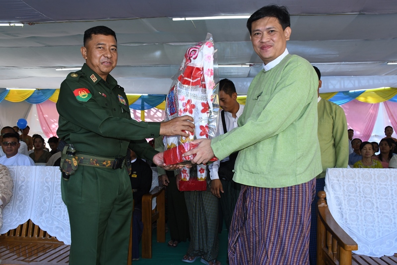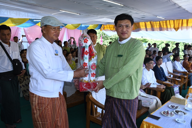 ဆက်လက်၍ ပြိုင်ပွဲဝင်ဆင်များမှ “အောင်စေပိုင်စေ” သီချင်းဖြင့် ဧည့်ခံဖျော်ဖြေခဲ့ပြီး ကျောက်ဆည်ခရိုင် စီမံခန့်ခွဲရေးနှင့်အုပ်ချုပ်ရေးကော်မတီဥက္ကဌက ဧည့်သည်တော်များအား ဆင်အကအလှပြိုင်ပွဲအမှတ်တရ လက်ဆောင်များပေးအပ်ခဲ့ကြသည်။